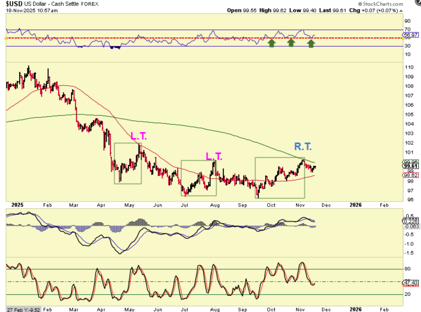 THE USD is crawling under the 50sma, but it is now forming R.T. daily cycles and indicates that an ICL is in place. That means that the USD should be able to break above the 50sma over time. It also makes me wonder about Gold and Silver being able to move against it or not?