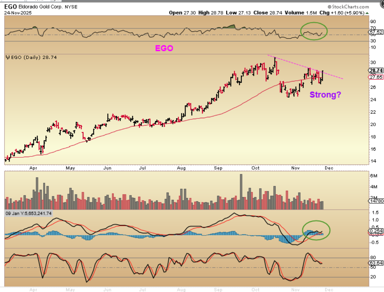 EGO popped above the 50sma yesterday and may be breaking the downtrend line. Suddenly this sector looks to be strengthening.
