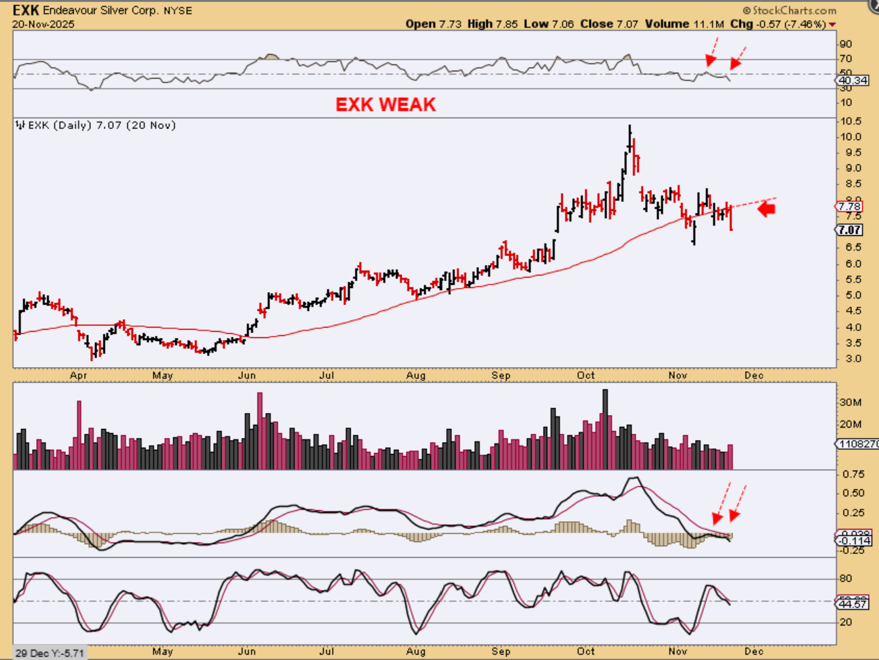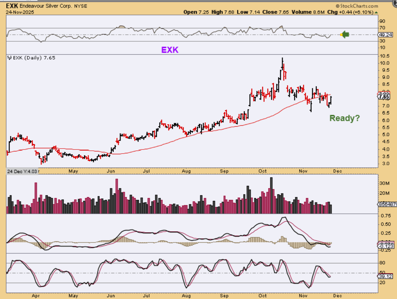 EXK – Last Thursday EXK lost the 50sma and this looked ready to make new lows.