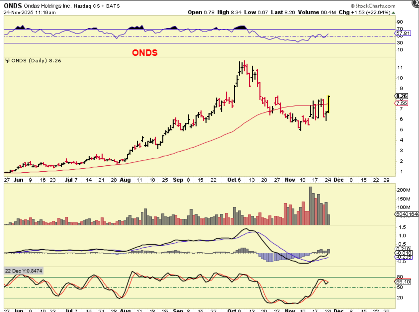 ONDS was up 22% in the first 2 hours, and closed up 30%.