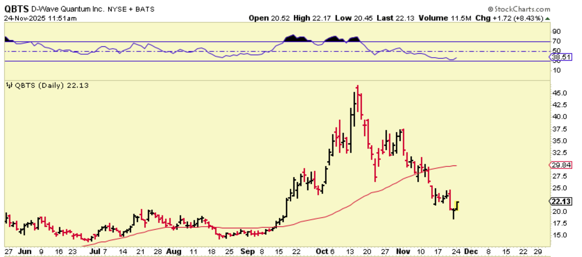 QBTS was climbing up slow and steady all day, so it was up 8% by noon, and closed up 13%, and so did RGTI, IONQ, QUBT, etc. These really took a beating and this could easily just be a good bounce. When an ICL is in place, however, and if they rally back upward to prior highs, the gains will be great! Even if you wanted to play it safe and wait for it to gain the 50sma again, the gains would be great from $29 to $46+.