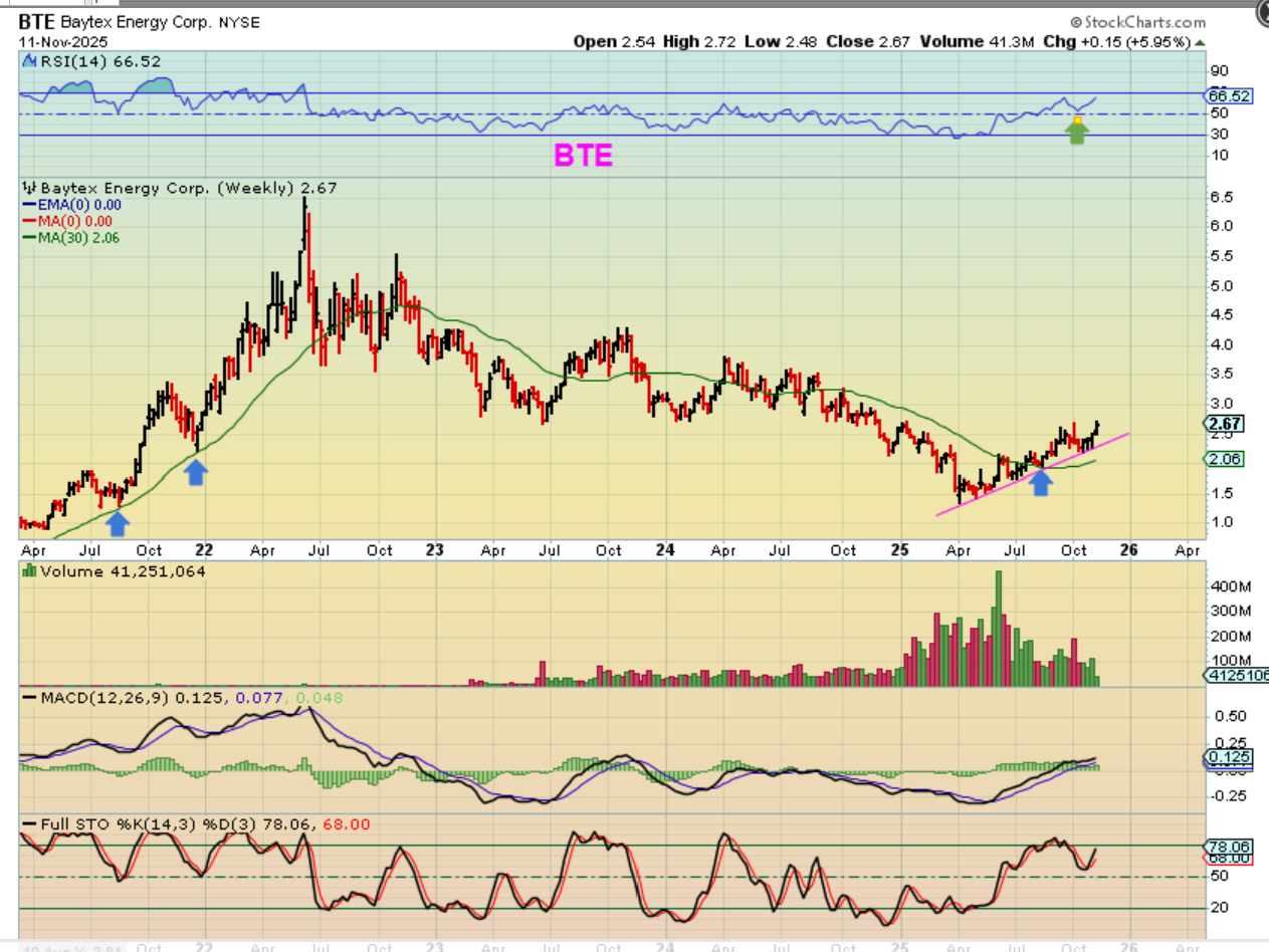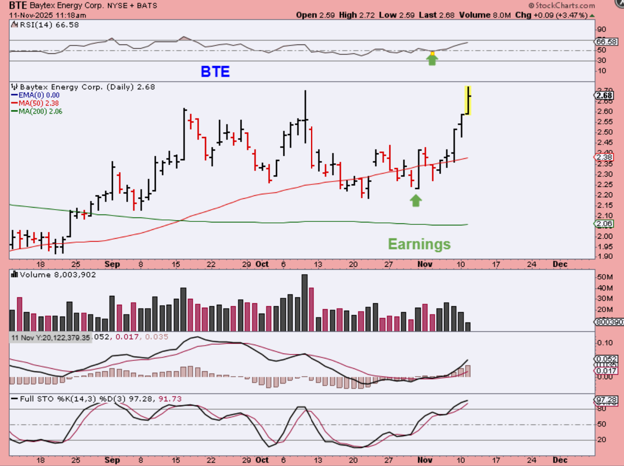 BTE also released earnings and pushed higher. This could pull back to the 50sma, but if Oil breaks out, this can just keep running, so I took a starter position. Why?…
