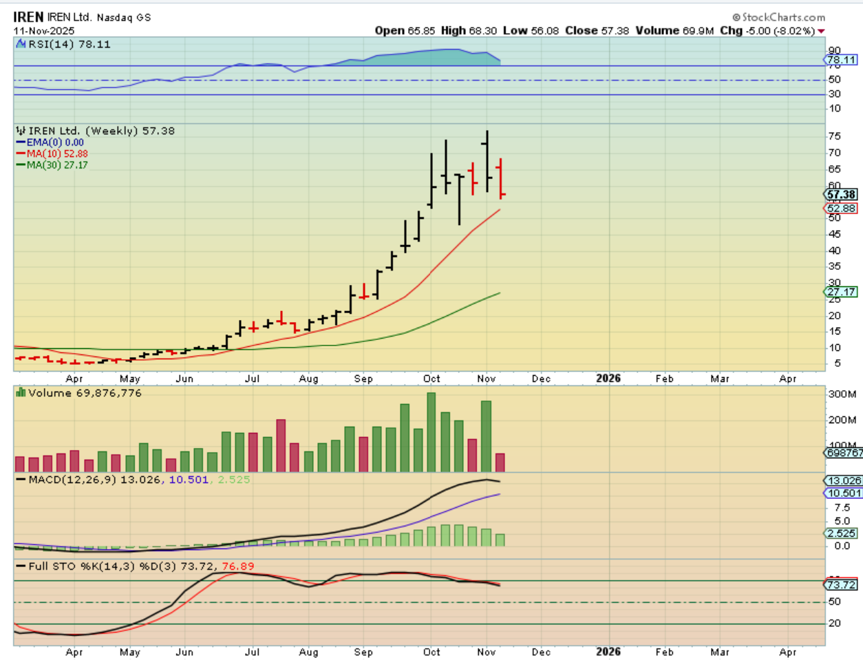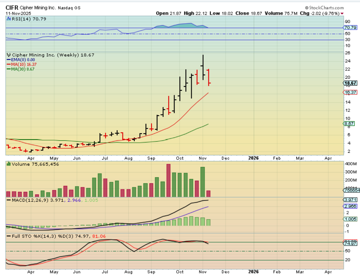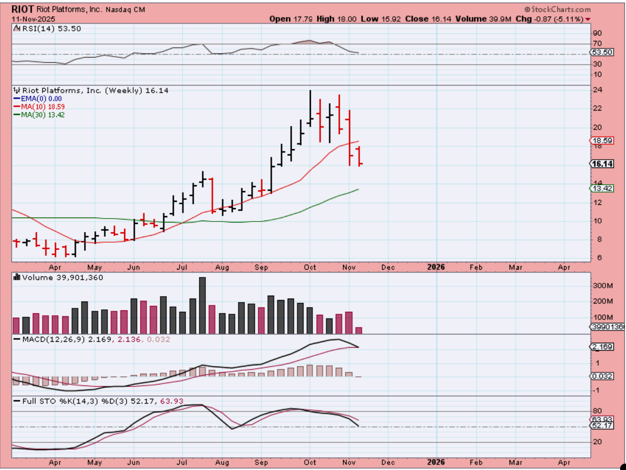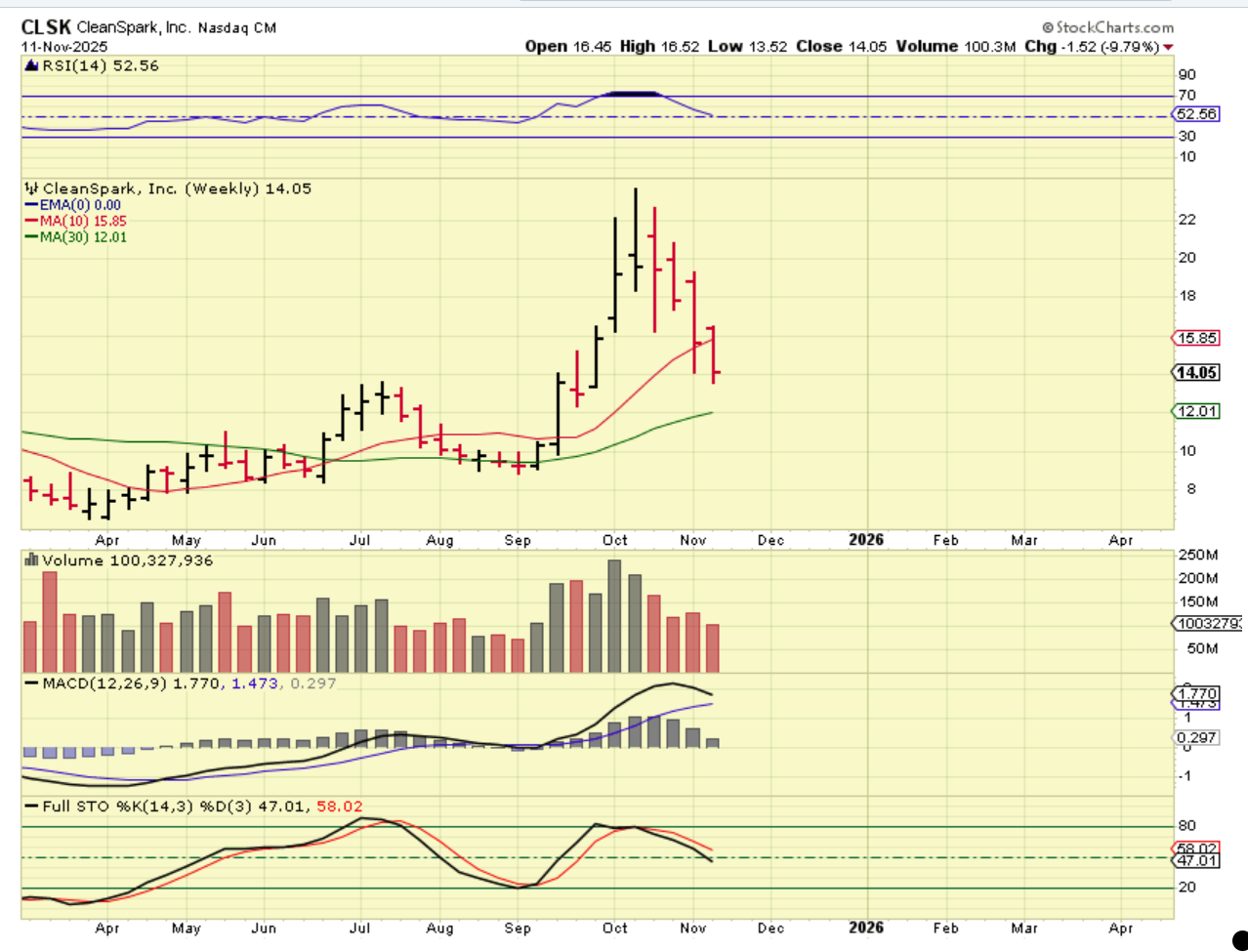 Let me just show you 4 weekly crypto stocks. 2 were the stronger ones (CIFR & IREN), the other 2 (RIOT & CLSK) did ‘ok’, but right now all 4 are near the weekly lows.
