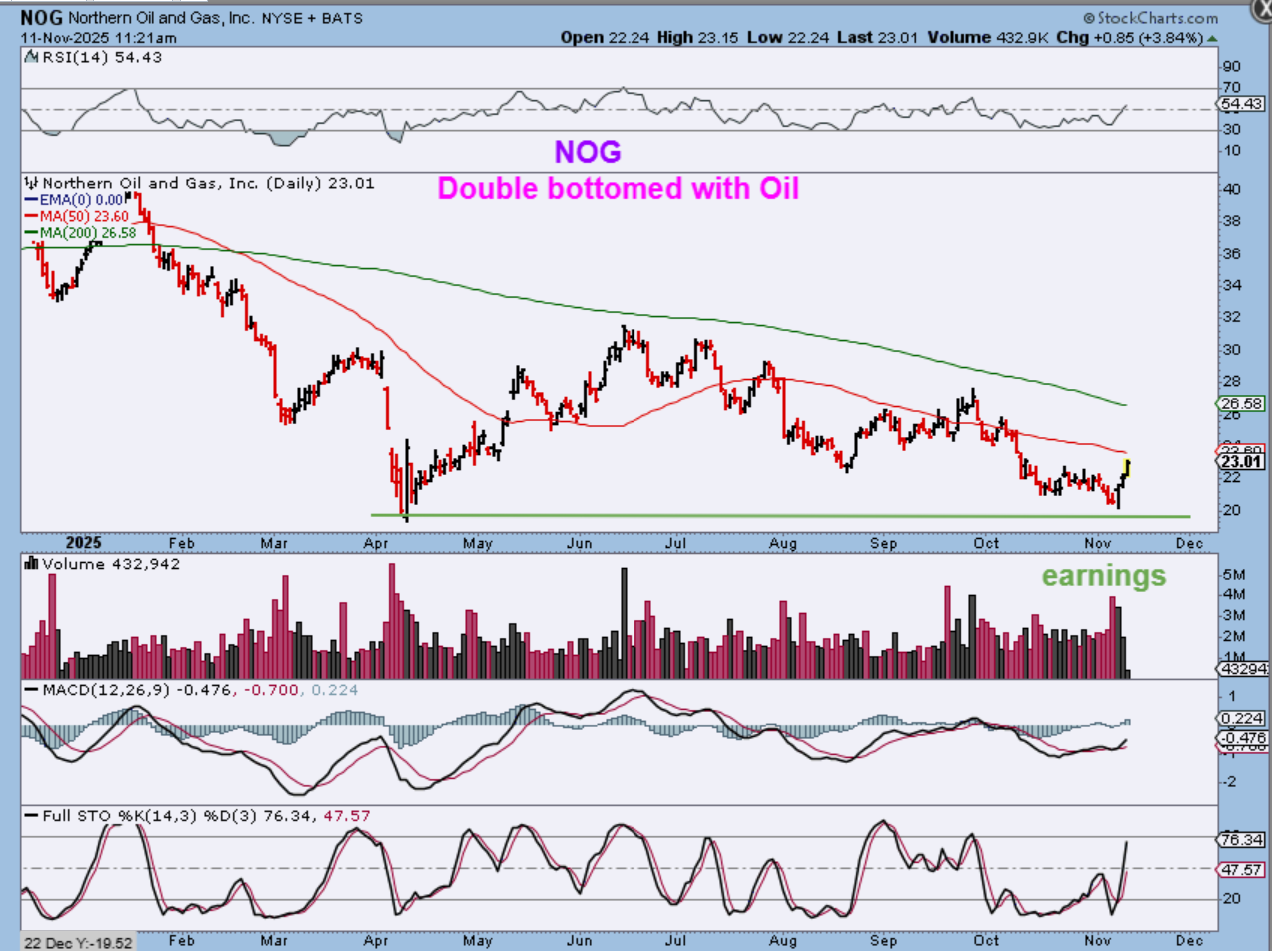 NOG has a double bottom and this 3 day push out of the lows came right after earnings was released, so Nog looks to have its bottom in place.