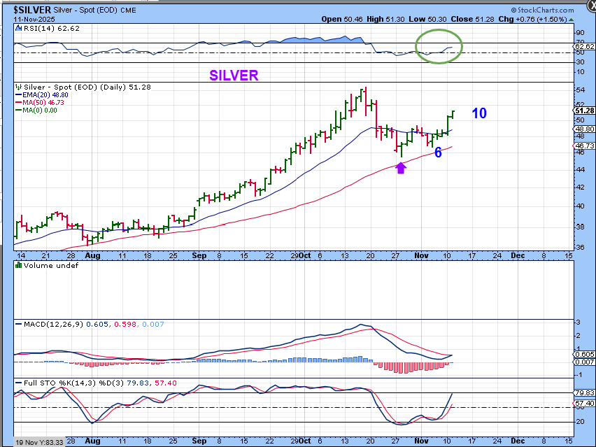 SILVER is on day 10 and tis does look like a bullish cup forming. You could raise stops to day 6.