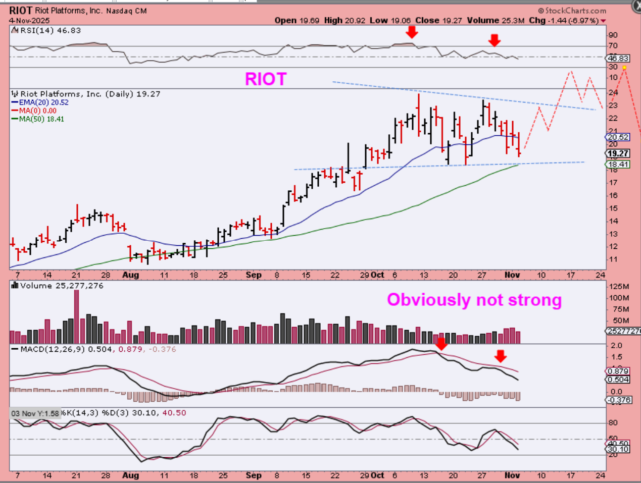 We saw selling yesterday, and I just want to report that it looked a bit different than past sell down days. Why? Well, I ran through my watchlists and usually I’ll see a good mix of stocks red and some green. It was hard to find any green stocks in ‘AI’, Aviation, Quants, Nuclear and Energy stocks, Crypto Stocks, and Miners. It was a complete sea of red, so that is something to take note of. If we move higher soon, we can look to see if it is a ‘weak’ looking bounce (Sell the bounce or lighten up), or do byers step back in with good volume? And as for Bitcoin? Even that got tricky yesterday. I wanted to load up heavily on that next low, but we’ll see. I’ll cover that below in detail. Enjoy your Wednesday trading!