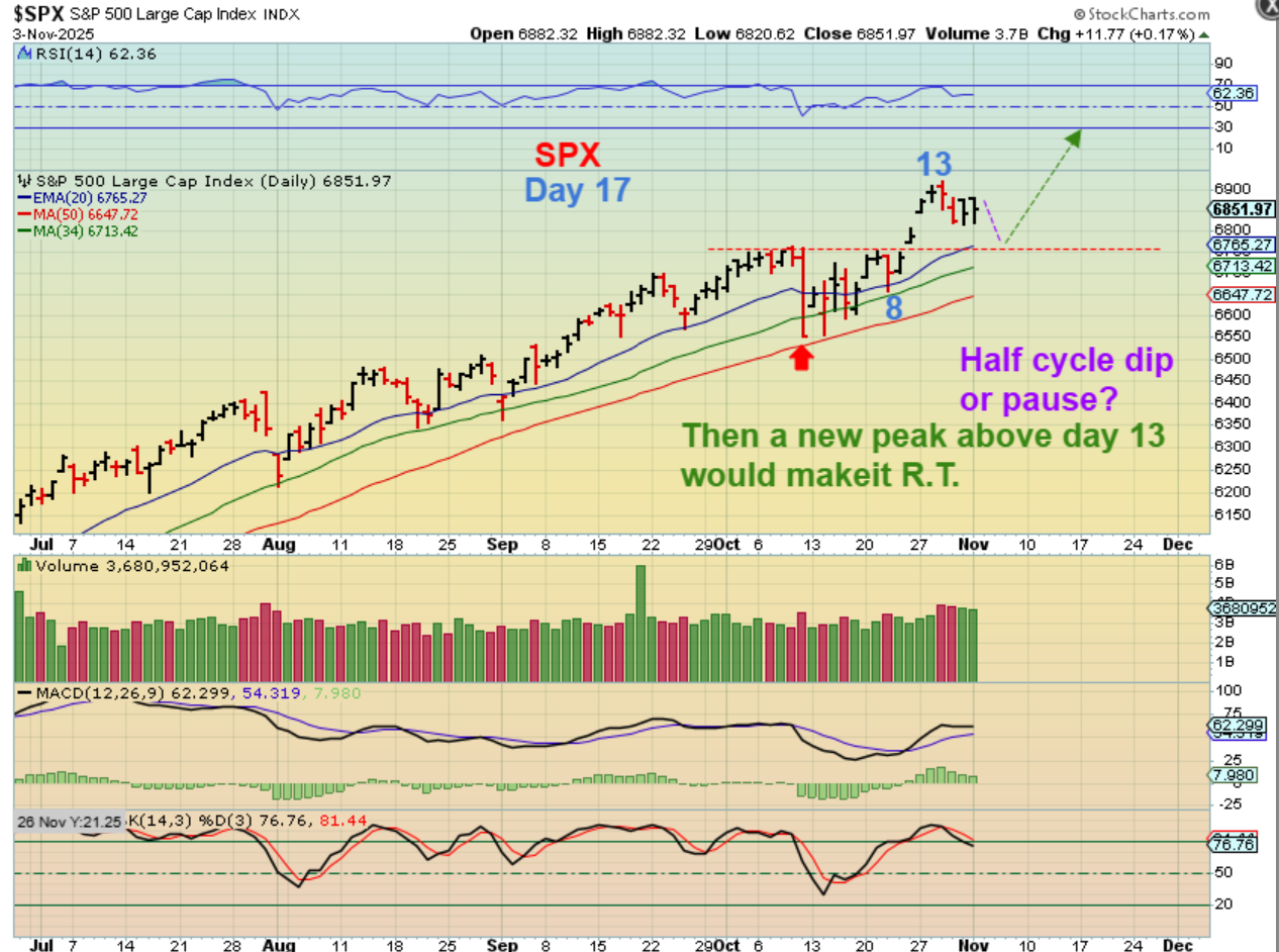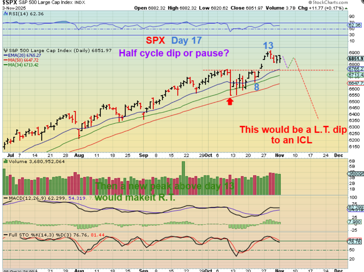 SPX– We keep in mind that an ICL is due according to the timing of this intermediate cycle. That may play out something like this chart shows us.