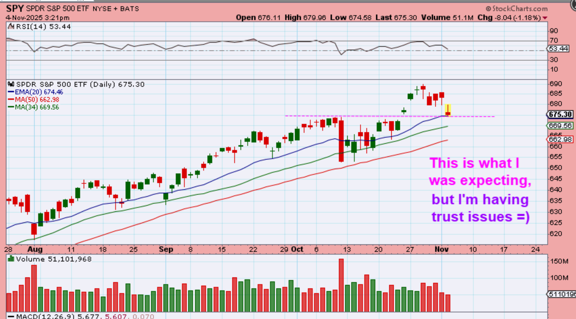 I’ve been thinking that we would drop to the 20ema and bounce and rally for a bit…or bounce and then roll over. I drew these 2 charts yesterday…