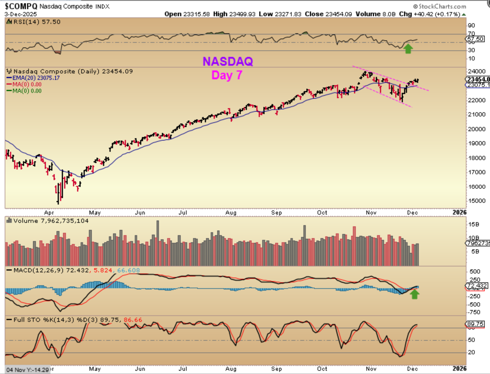 NASDAQ – We have our recent lows in place and on day 7 we are moving higher toward new all-time new highs. The promise of a rate cut really sparked the markets (again). Many tech stocks started to take off higher this week too.
