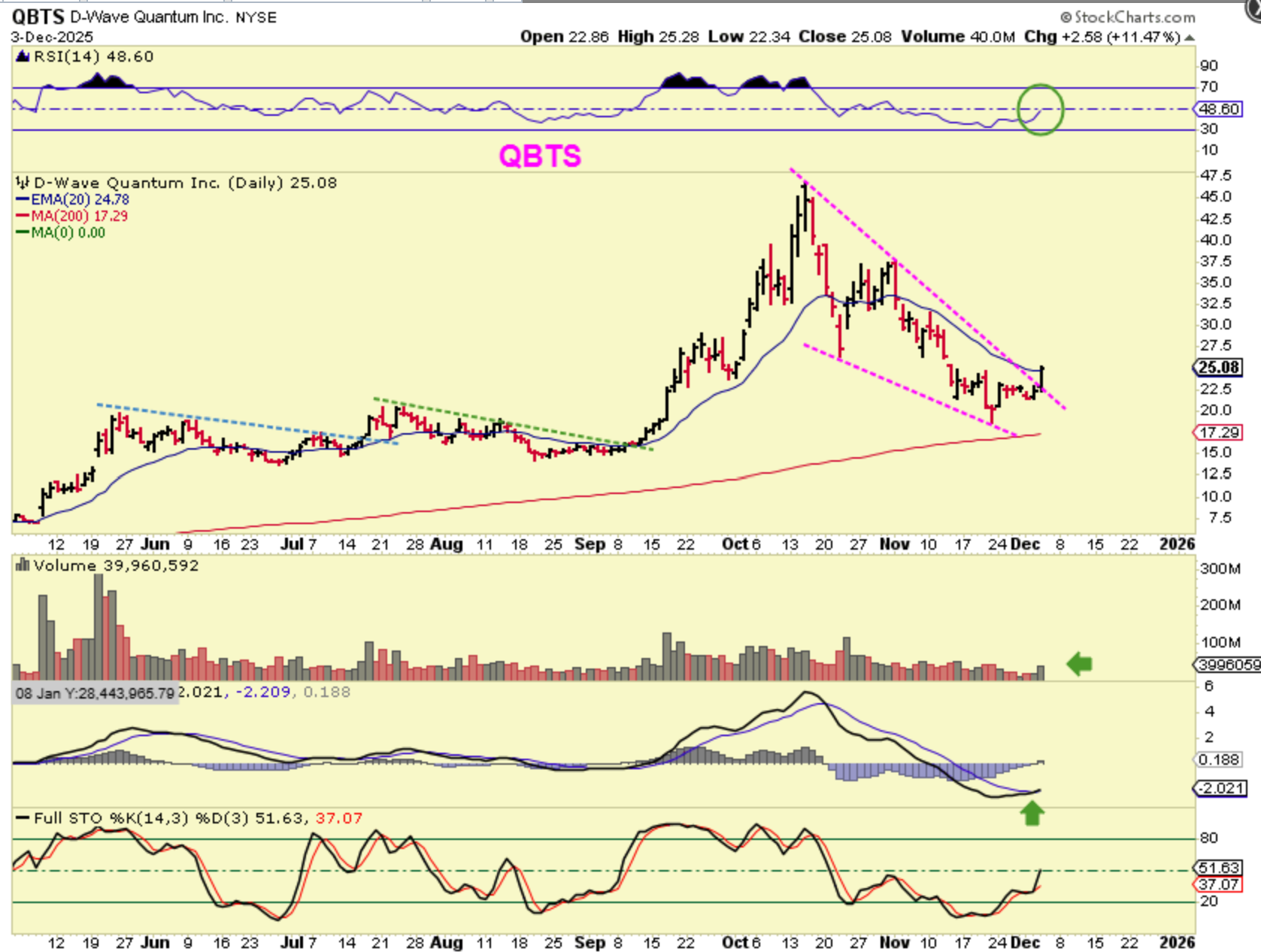 QBTS – This ran up from $22 to $24, pulled back midday swoon, and then they all started to swiftly after tagging the orange moving average. So…