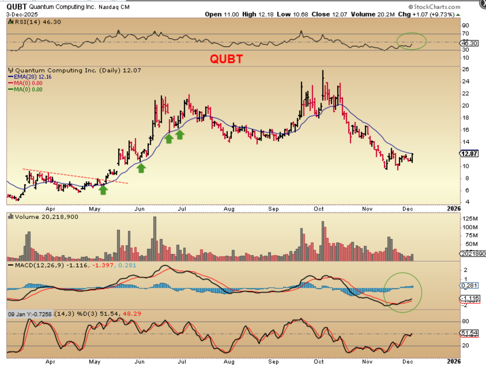 This is what the chart looks like at the end of the day. It doesn’t look like much, but that was a nice 12% gain for QBTS, and it looks to be breaking out here.  Notice: In JULY it broke out and then consolidated, in September it broke out and tripled!  I’m hoping for a triple 🙂