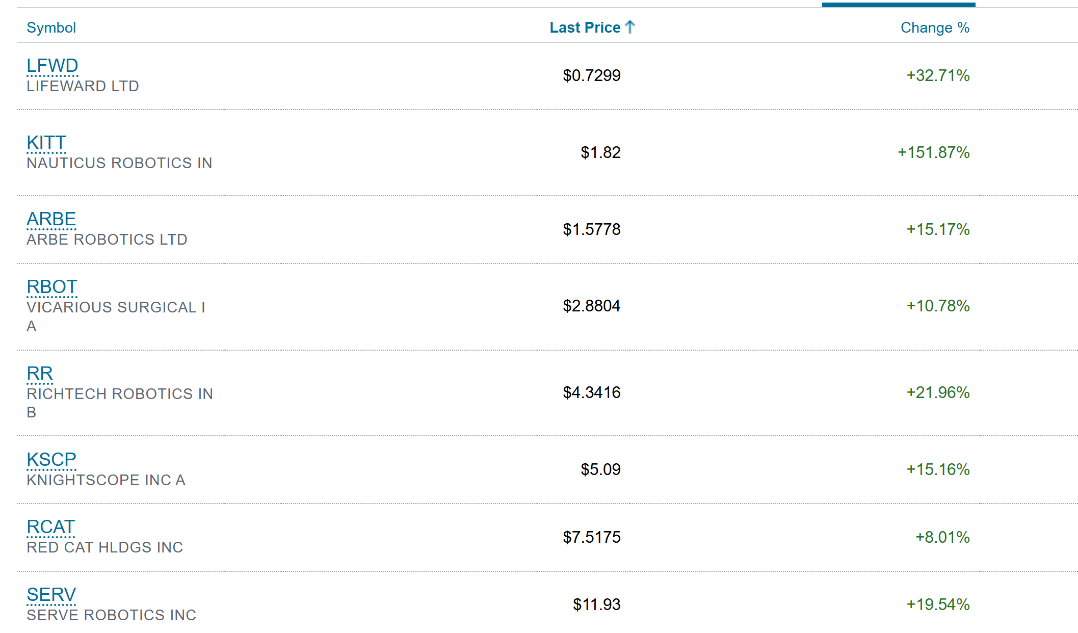 RR IS A ROBOTICS STOCK AND TAKE A LOOK AT THAT SECTOR YESTERDAY! This is my checklist, and take a look at the %-Gains