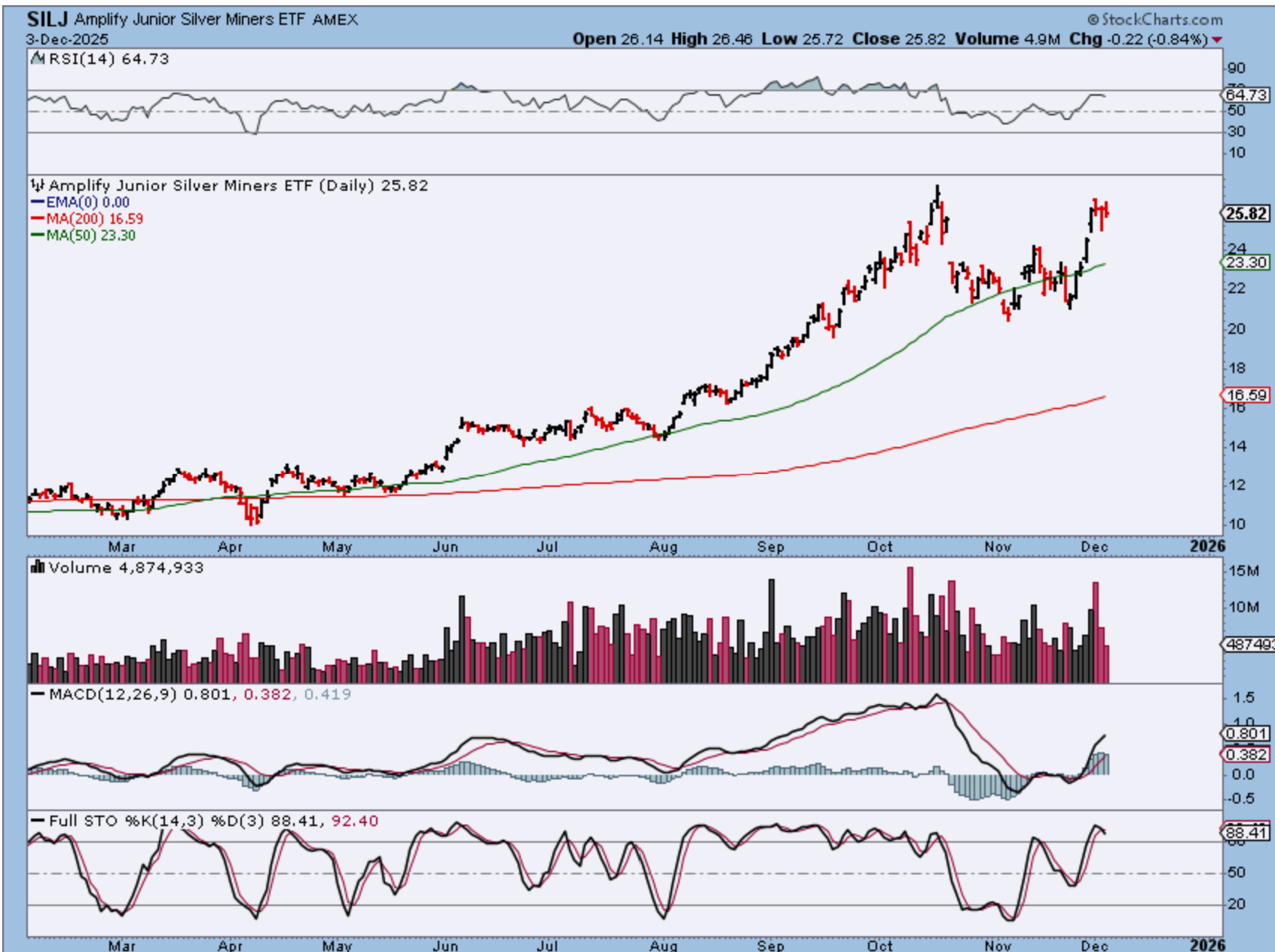 SILJ has also formed a cup and now may be putting a handle in place. This is why I thought that maybe Silver may give us a flag. I do want to note that this also may just move over to the 10 or 20 ma before pushing higher.