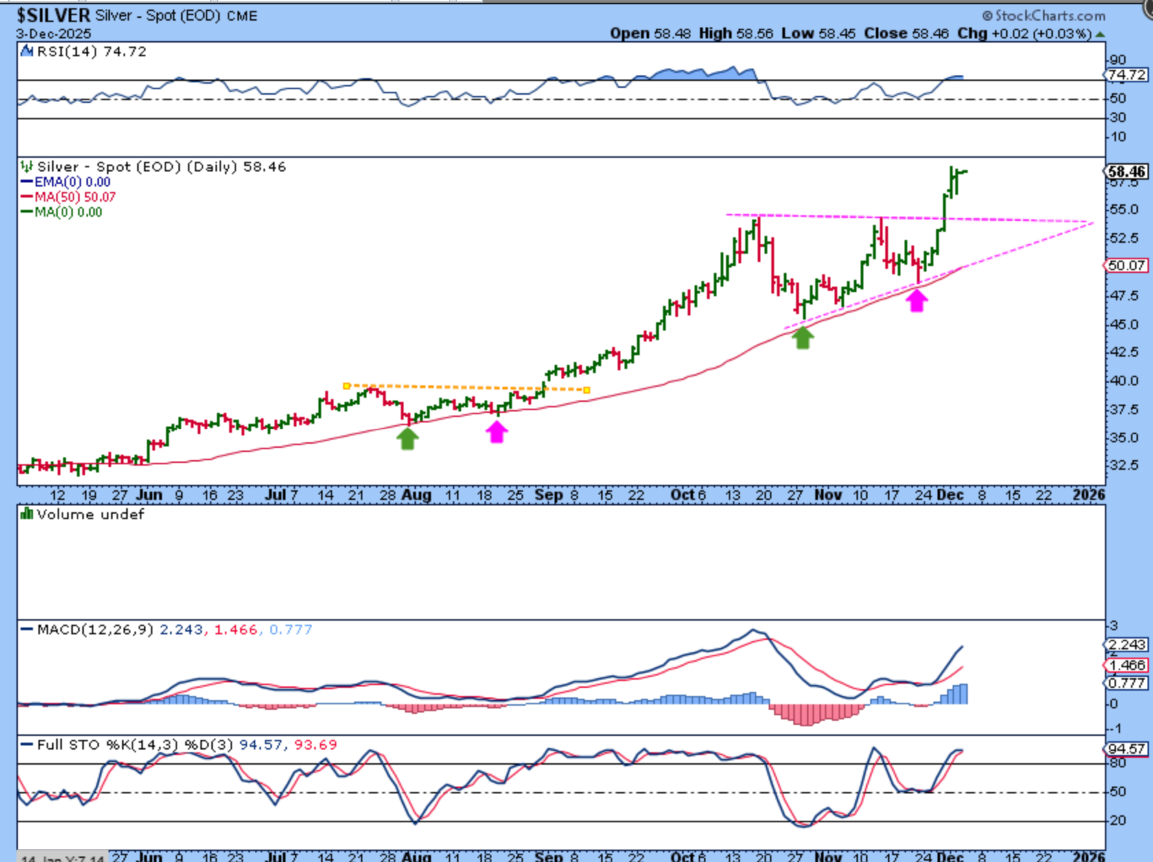 SILVER broke out and it could stall or just keep running. I’d personally like to see it stall, maybe…