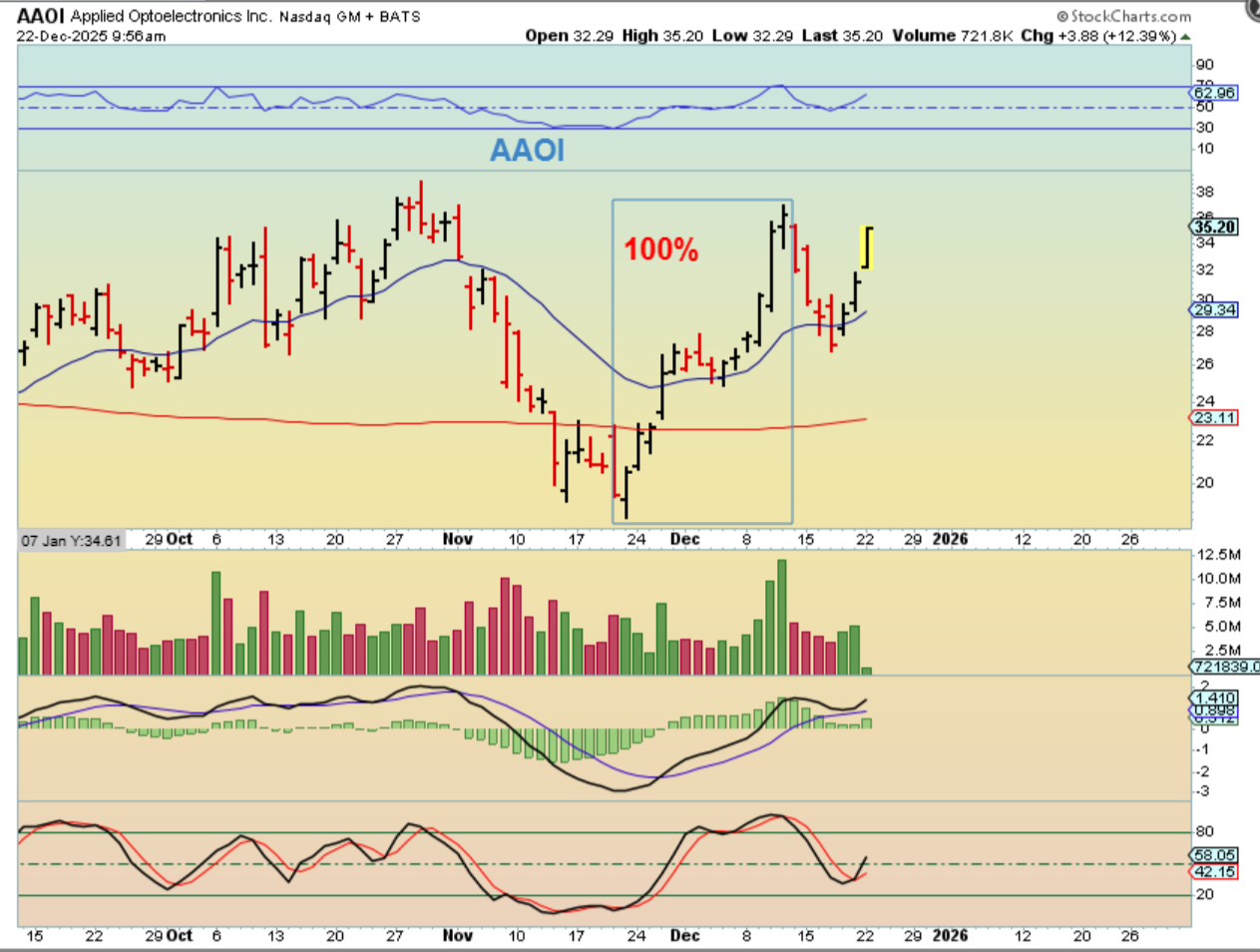 I also discussed AAOI & RKLB as favorites of mine in recent reports. Why? They have been big gainers out of the April ICL and This ICL. I said that AAOI already doubled out of the November ICL. AAOI was up 12% by 10a.m.