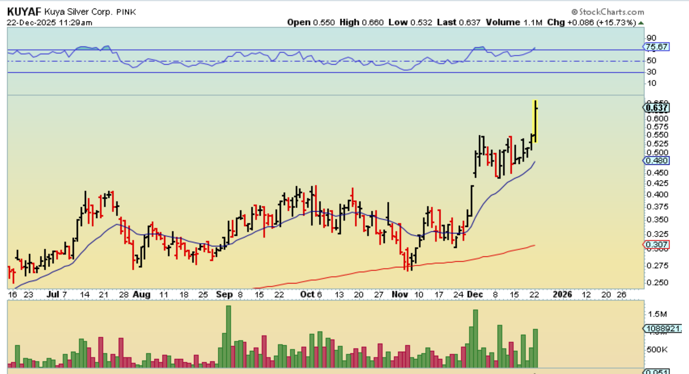 MINER: I just want to mention something here. Gold and especially Silver are very bullish, but the Miners seem to be lacking steady buying, in my opinion. Yes, I see the occasional POP of 10-20% on news, but across my watchlists of Gold, Silver, Juniors, explorers, etc , I keep seeing Pop and drop repeatedly. It’s just something to keep an eye on, miners are not bearish at all. In my opinion, when Silver surges the way that it has, day after day after day, silver stocks should be up 7-10% or more. I’m seeing 2% days and 4% days. I’m even seeing pop and drop to red. Miners usually exaggerate the move of the Metals higher, so it is a bit disappointing, hopefully it will change. It can change over time. I’ll discuss that a bit more below…