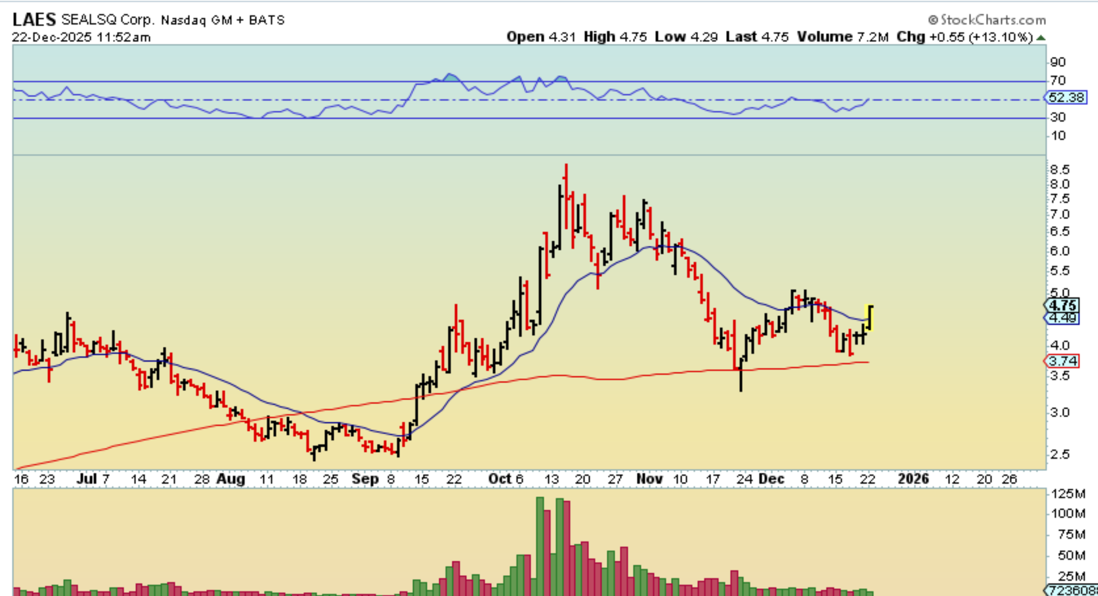 I mentioned that LAES is lagging, but it has had some strong rallies too. This could run up 100% or more if the markets remain bullish.