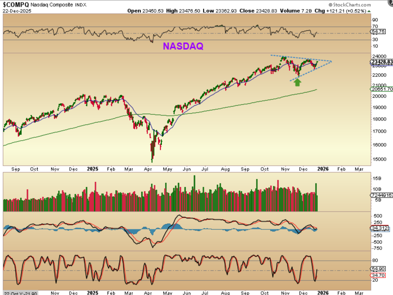 THE NASDAQ is not at the highs yet, but we do seem to be forming a bullish triangle. I want to discuss a few stocks…