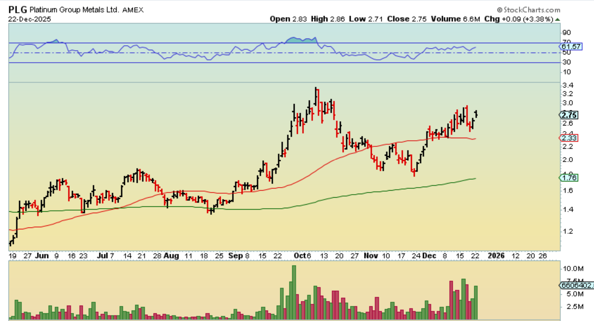 PLG I would have expected more out of Platinum group Metals (SPPP is following Platinum, but may be a tad extended ).
