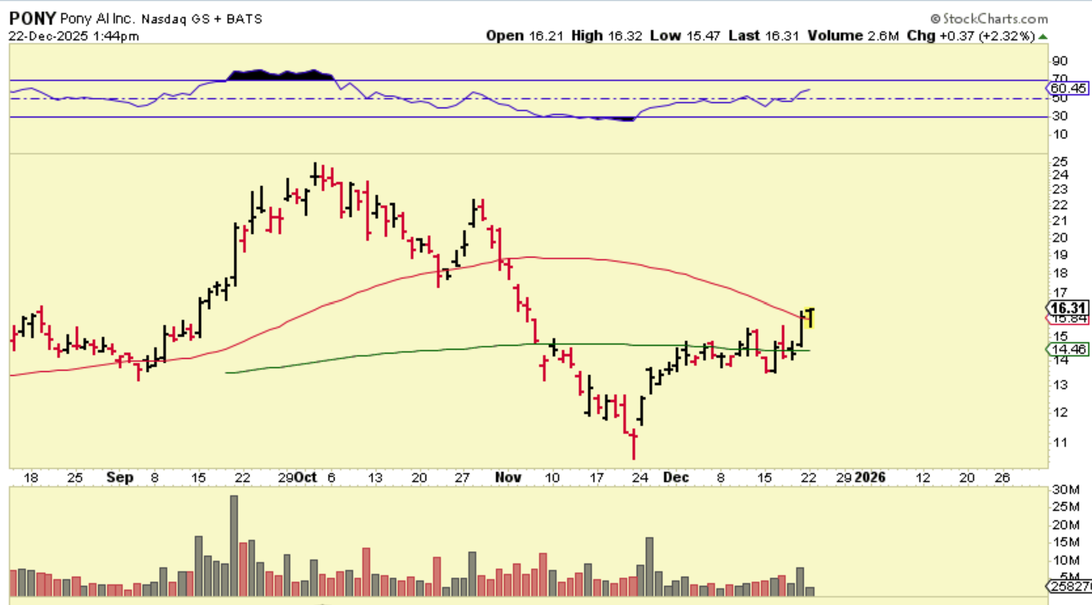 PONY is also a good buy, because they already released earnings and did well. It hugged the 50sma during the recent sell off, so I do think that this will return to the highs over time.