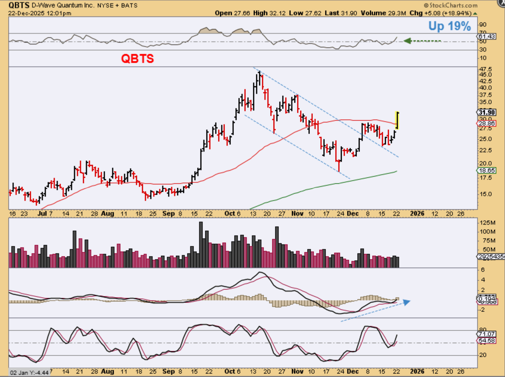 QBTS was up 19% on Monday! It broke above the 50sma in very bullish manner. Other Quants mentioned were also up double digit %-Gains.