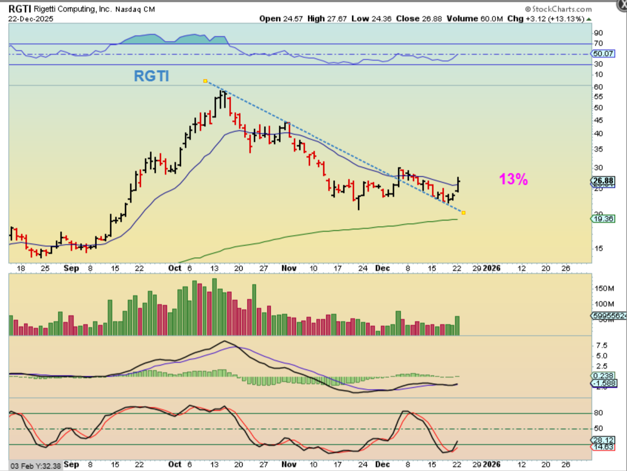 RGTI popped up 13%. These are big gains over time. The dips can be painful if it drops 5% or so , but if the markets remain bullish, these can double or triple.