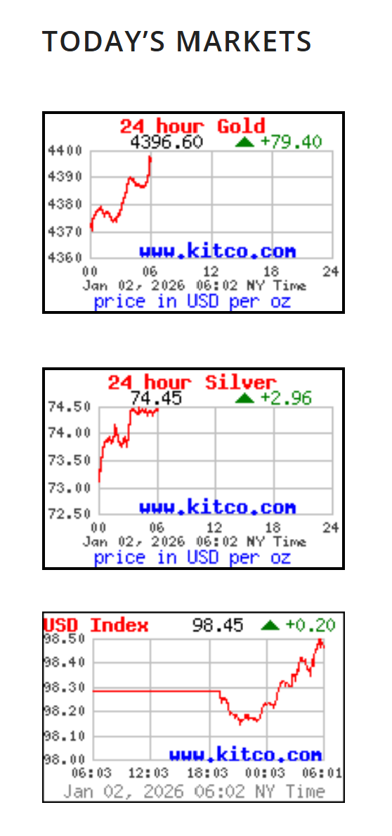 Again, this is the last trading day of the week, but also the first trading day of 2026. So far, the futures are green in the general markets and Gold and Silver.