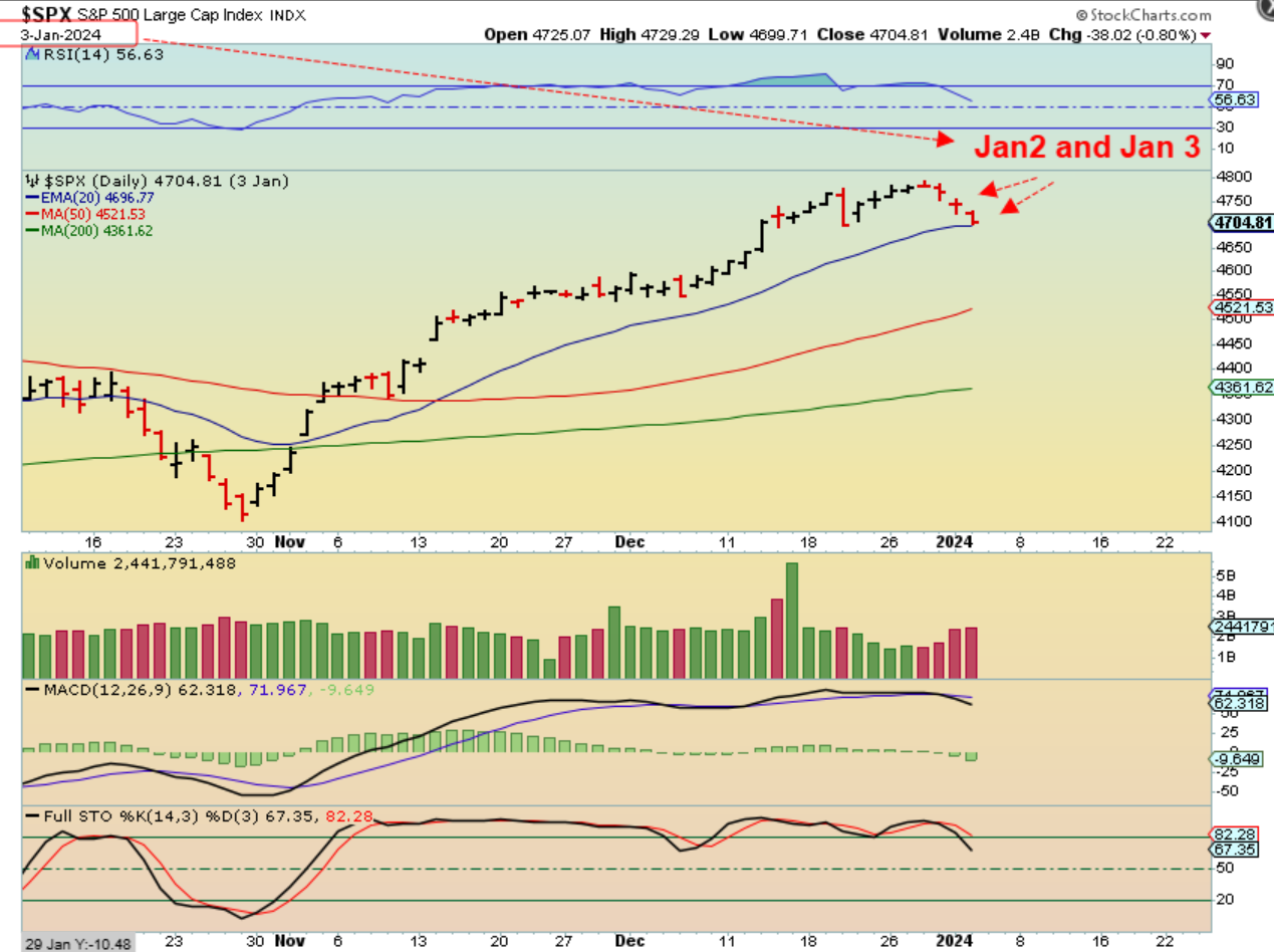 THE SPX rallied at the end of 2023 and then on January 2 and 3 we saw selling for the first couple of days of the year. What followed?