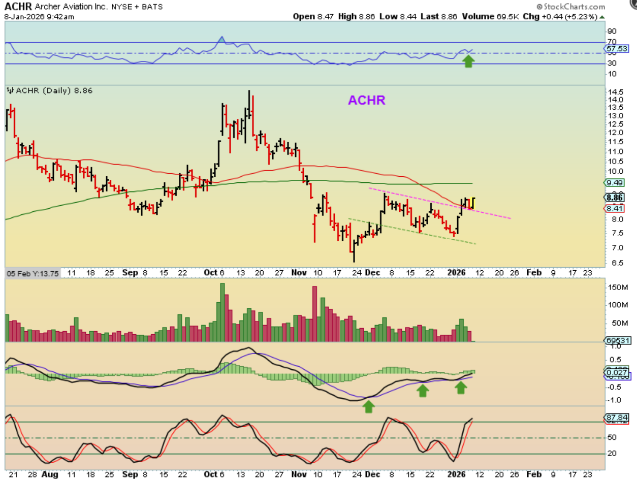 ACHER AVIATION rallied out of the November ICL, consolidated, and started to run higher again. It is now rising along the top of the 50sma and can move higher at any time.