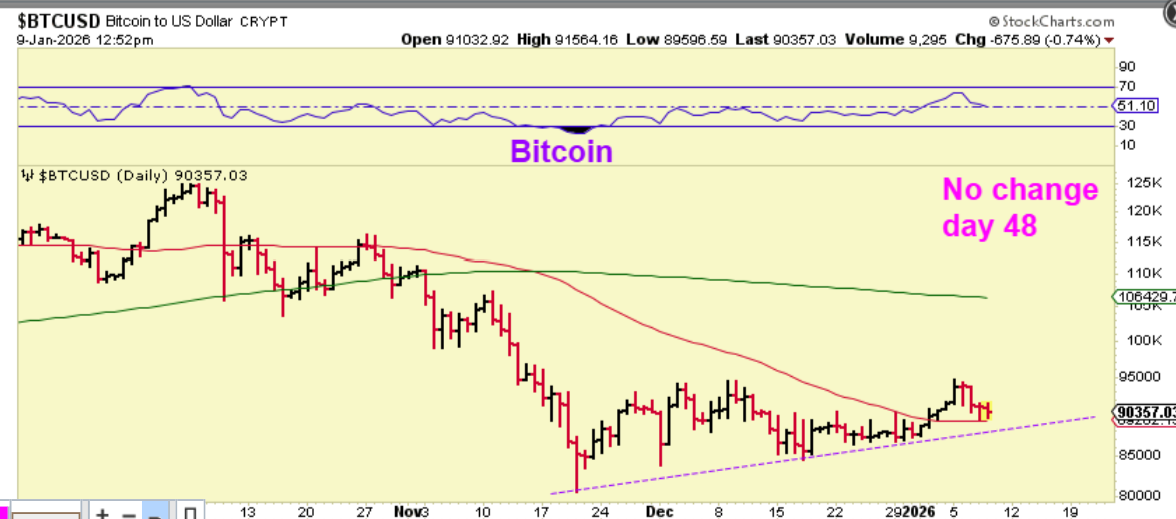 BITCOIN -No change one day later, but at least it is holding support and above the uptrend line.