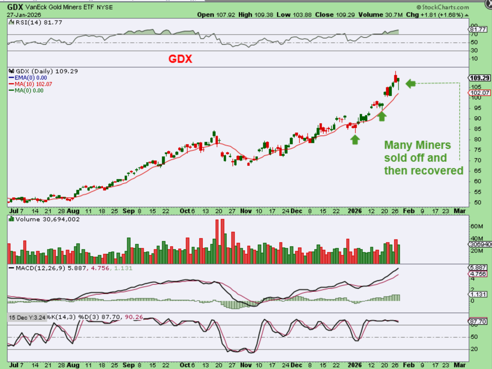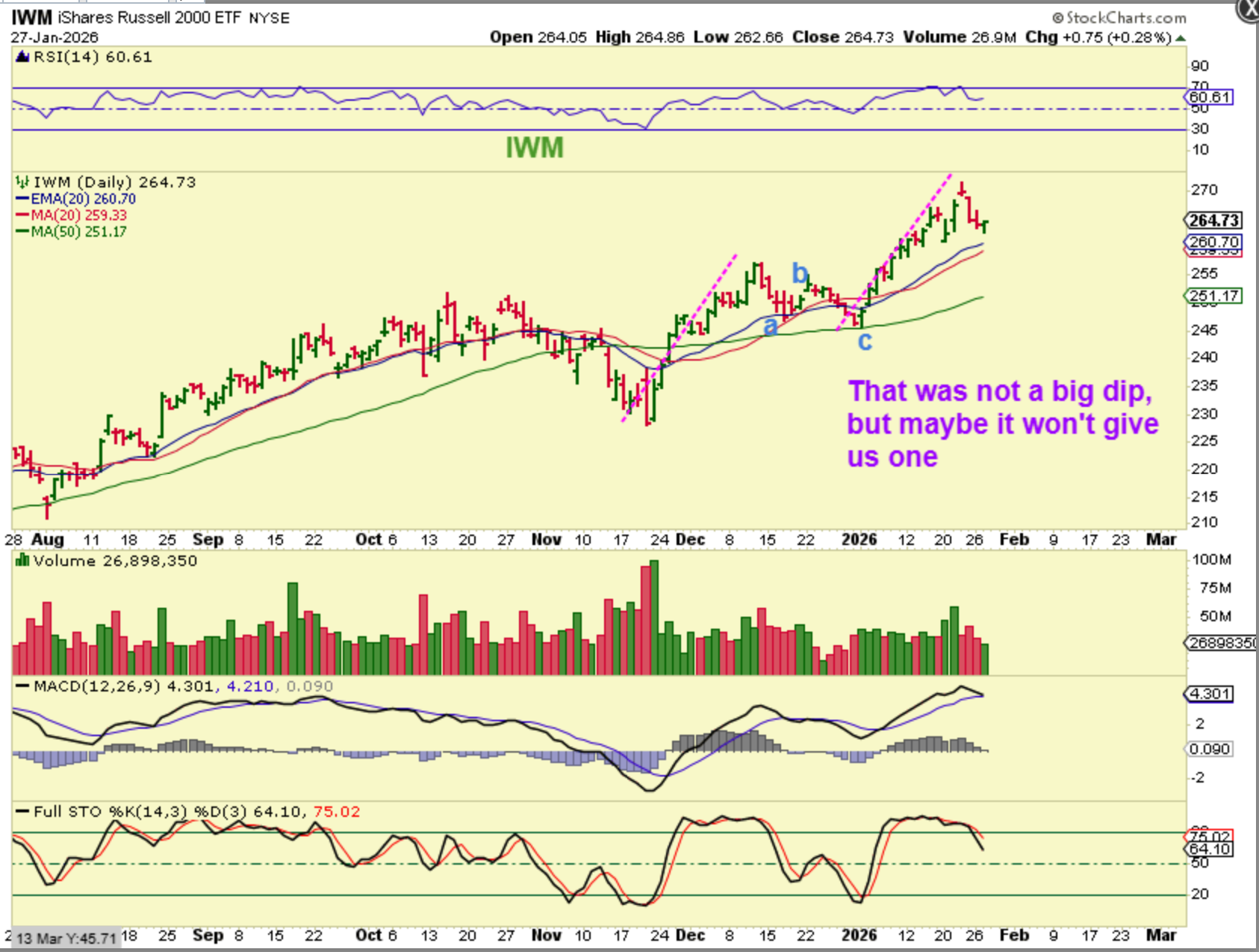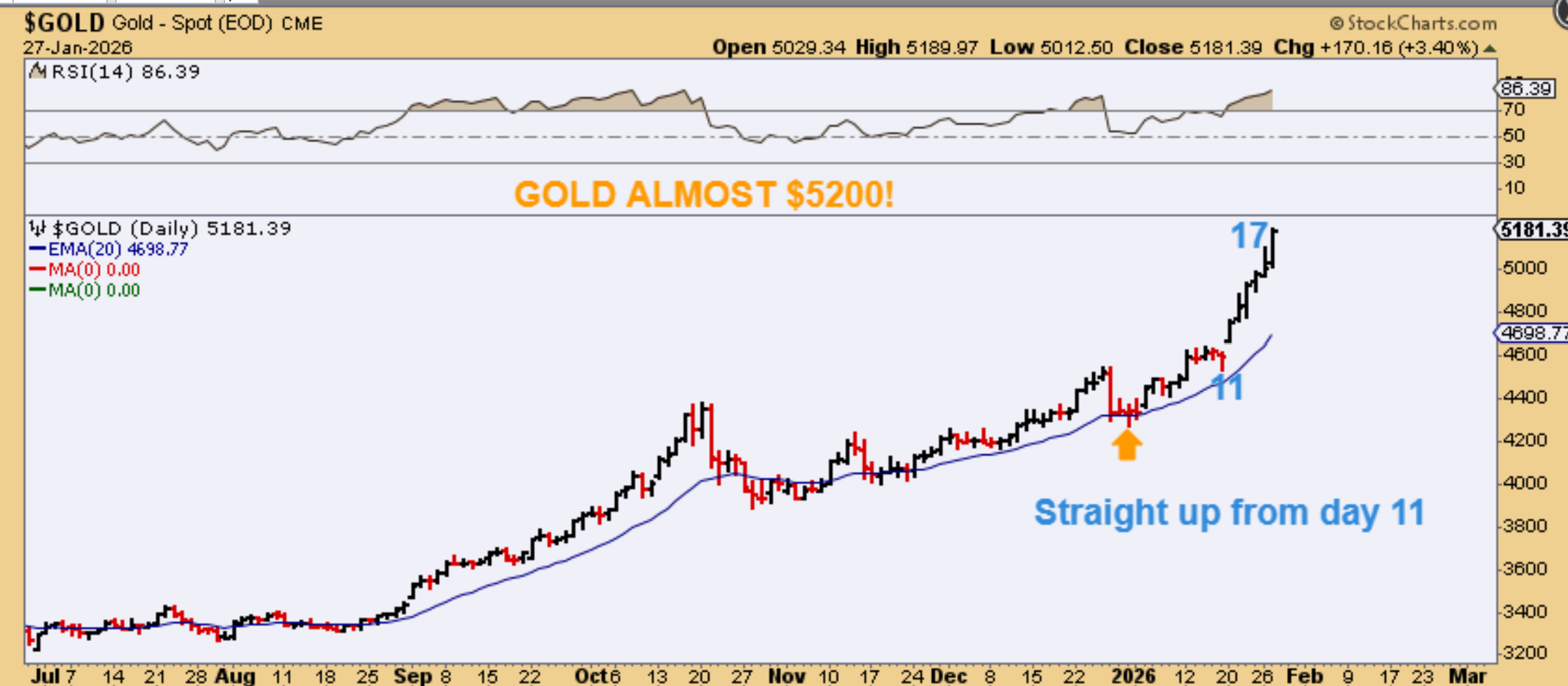 The above report was written on Tuesday evening. Today is the first F.O.M.C. Meeting of 2026, and since we did get a rate cut last December, it is expected that we will not see any change today. What is discussed in the Fed Meeting from 2:30 p.m. ET onward is what could be a market mover.  Gold was up over $115 last night, over $5300! Silver was up about $4 and it was at $116, but they’ve started to sell off from those highs.
