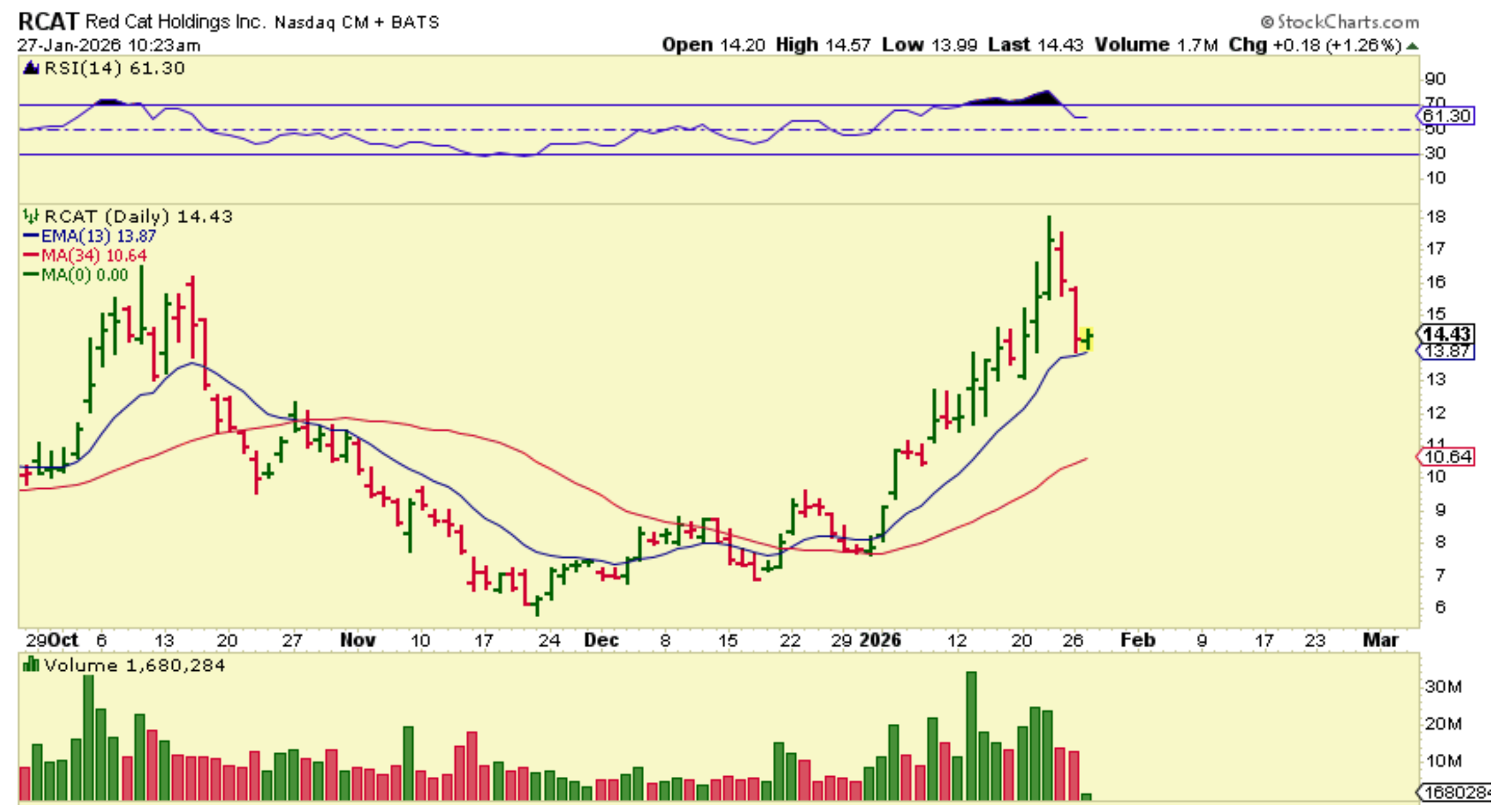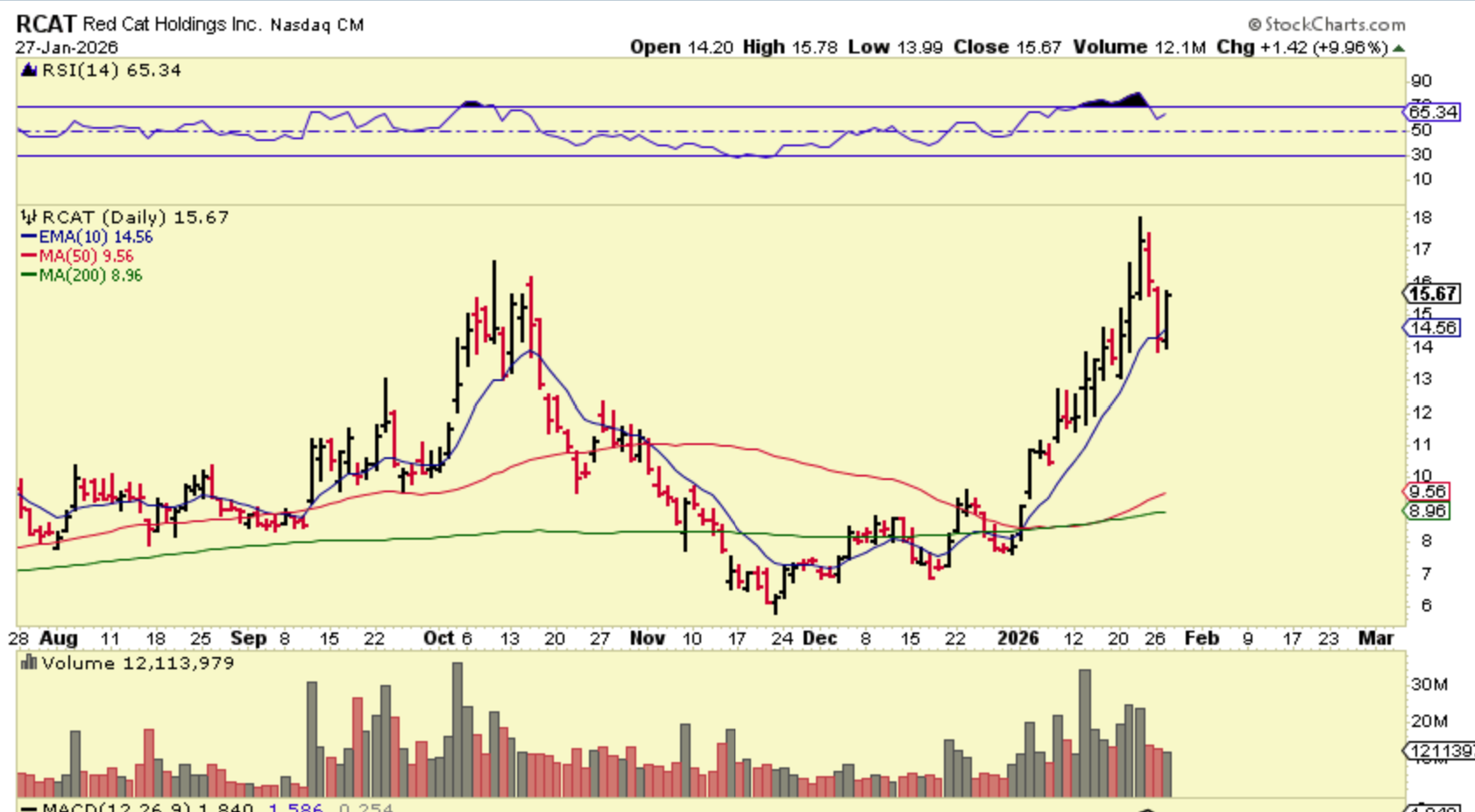 RCAT (Drones) was sitting right on the 13sma, so it could be bought with a stop. It closed up about 10%…