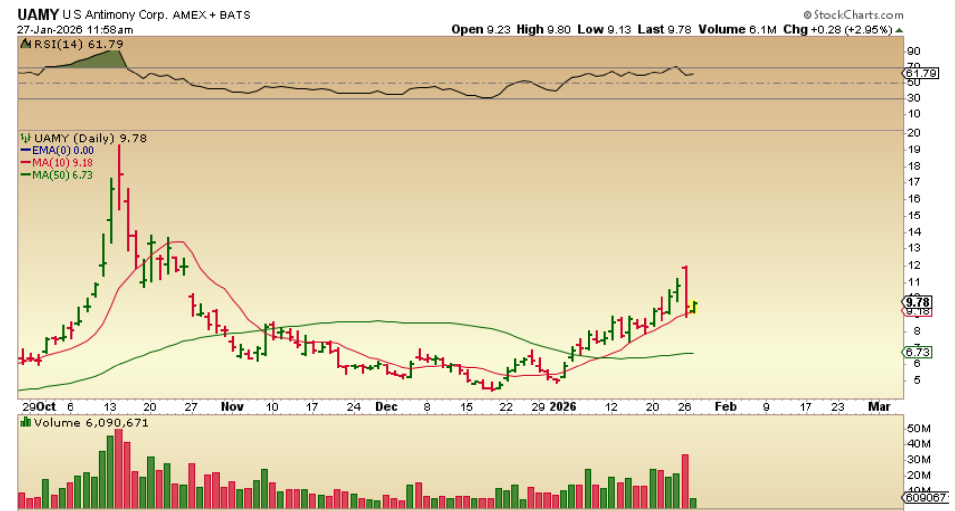 UAMY turned up at the 10sma too, so we are seeing various areas of support trying to hold up price. We’ll see if the Fed can trigger a continuation rally in the 2nd daily cycle.