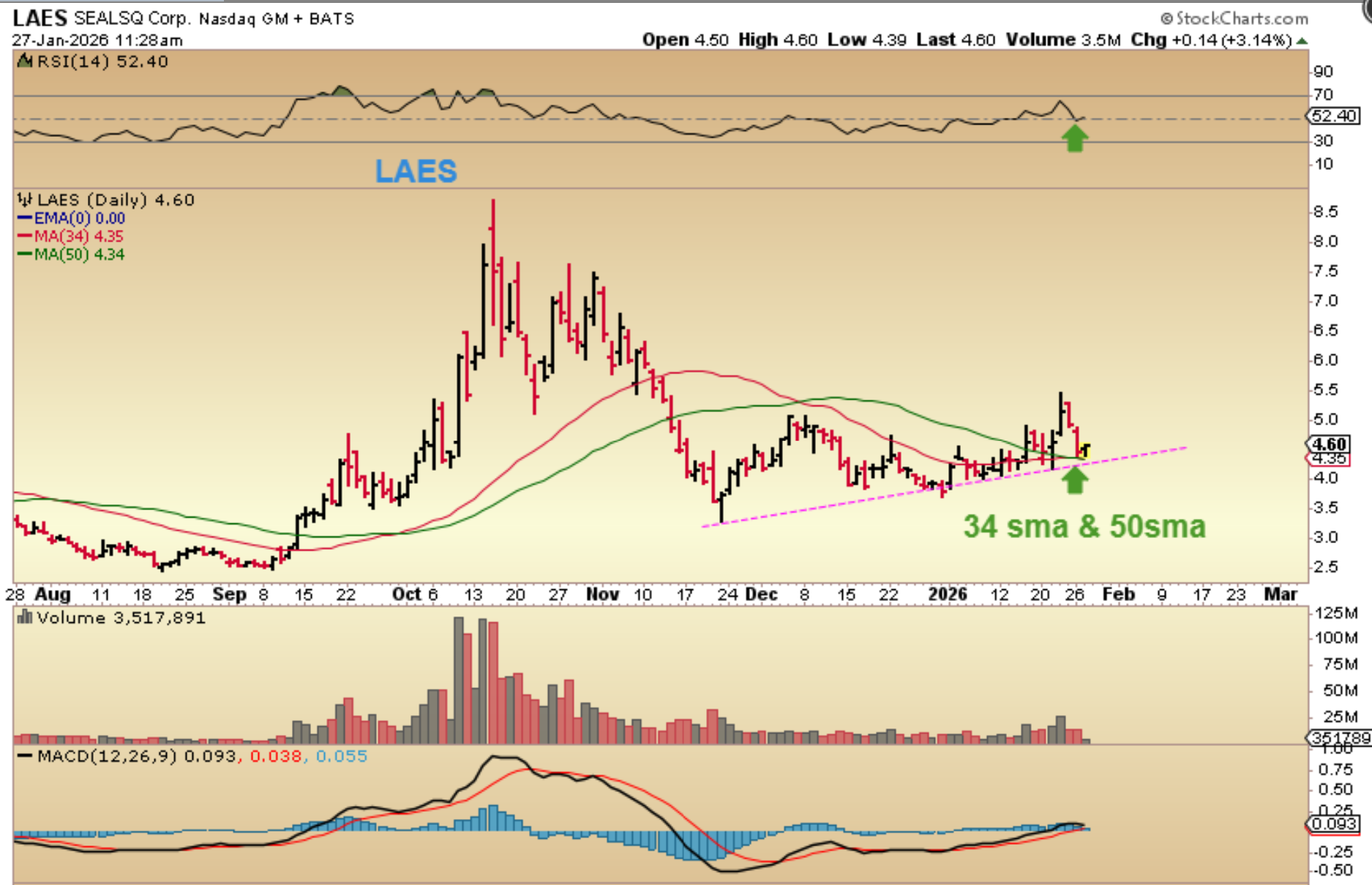LAES was reversing in the morning, so I poste this chart as a low risk entry at the 50 & 34 sma. It closed up almost 7% and can continue higher.
