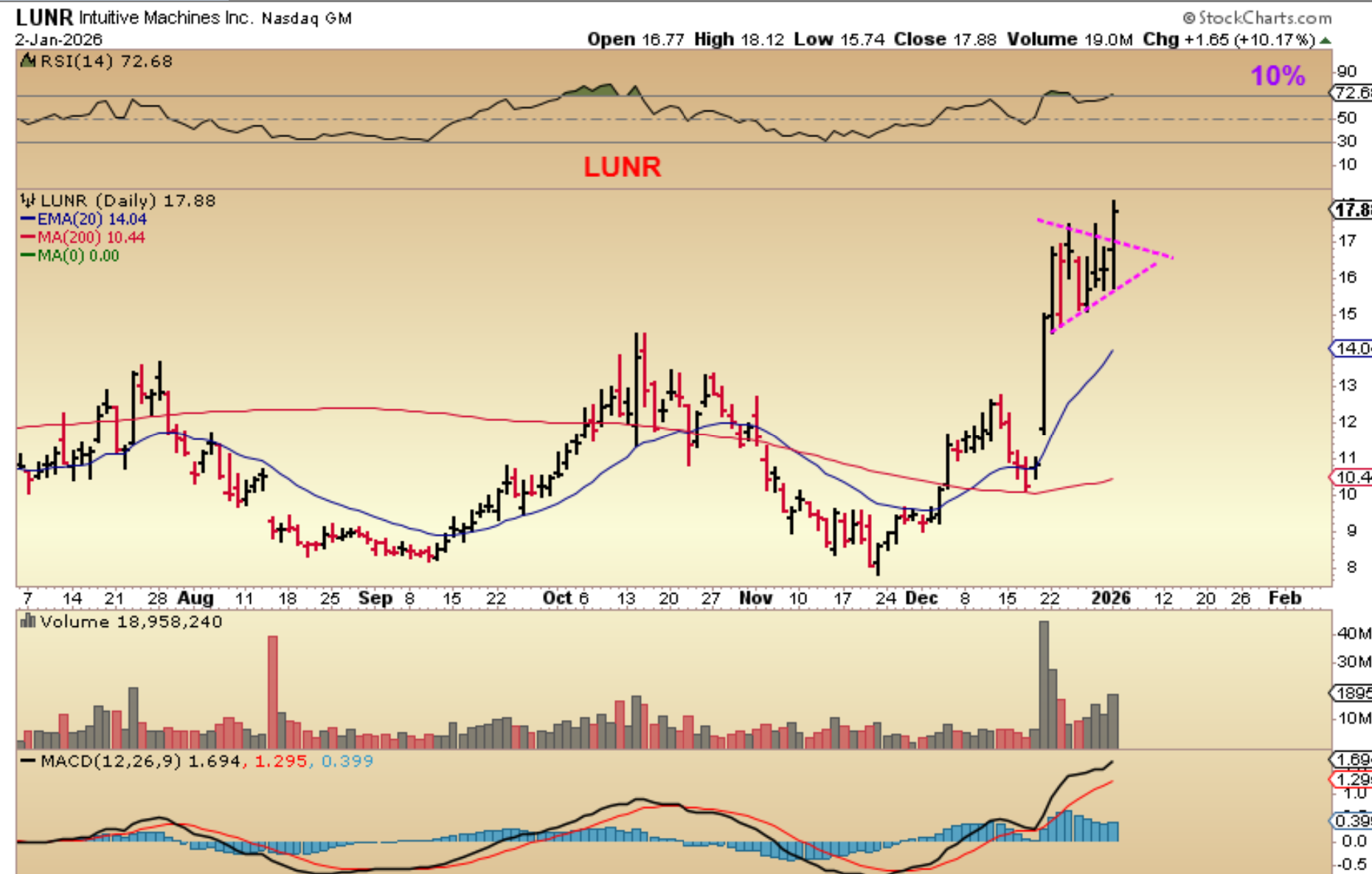 LUNR bull pennant on Dec 31.