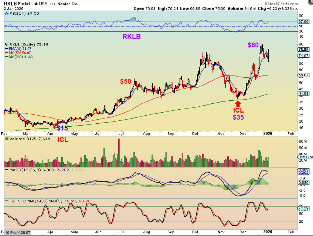 Everyone knows that I loved RKLB in 2025, and it reversed Friday at support so I posted this live an hr into trading. It was Red to green, only up 2% and it doubled out of the Nov ICL too…