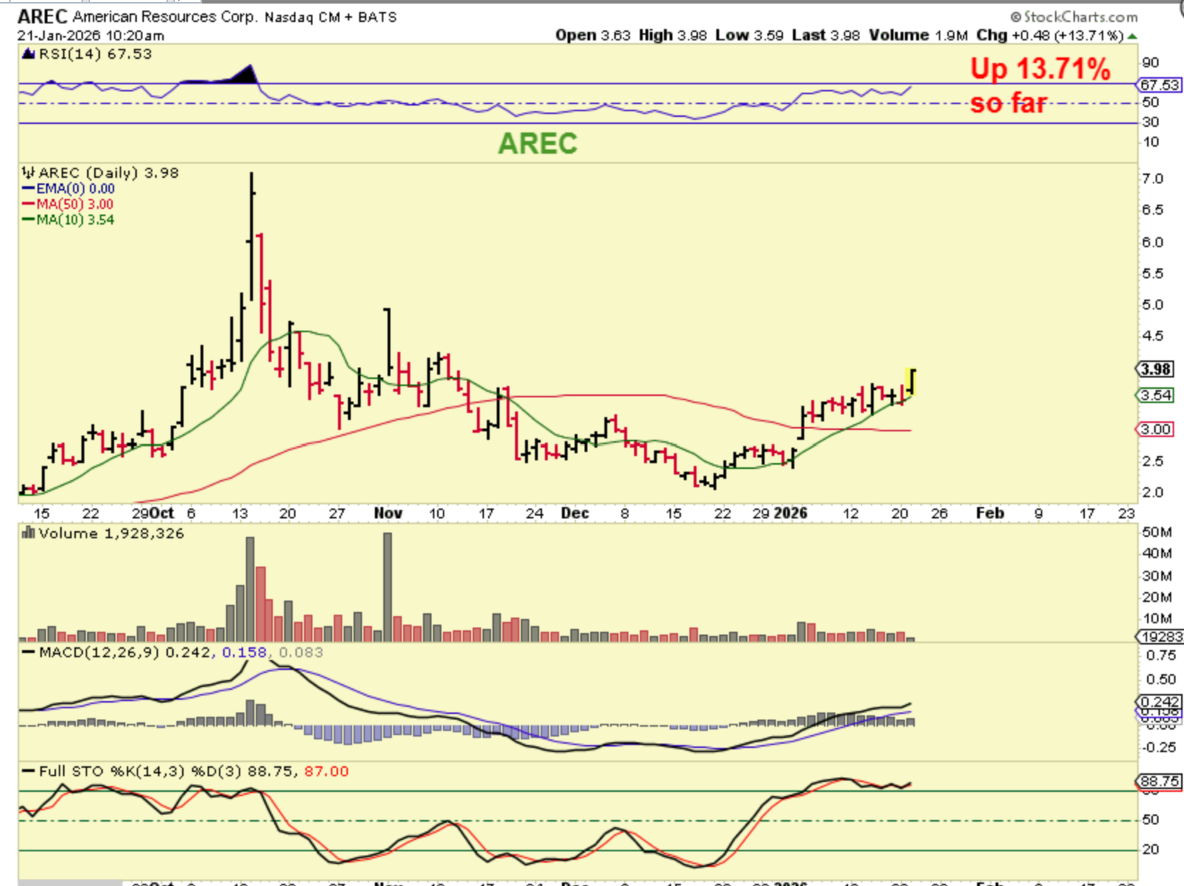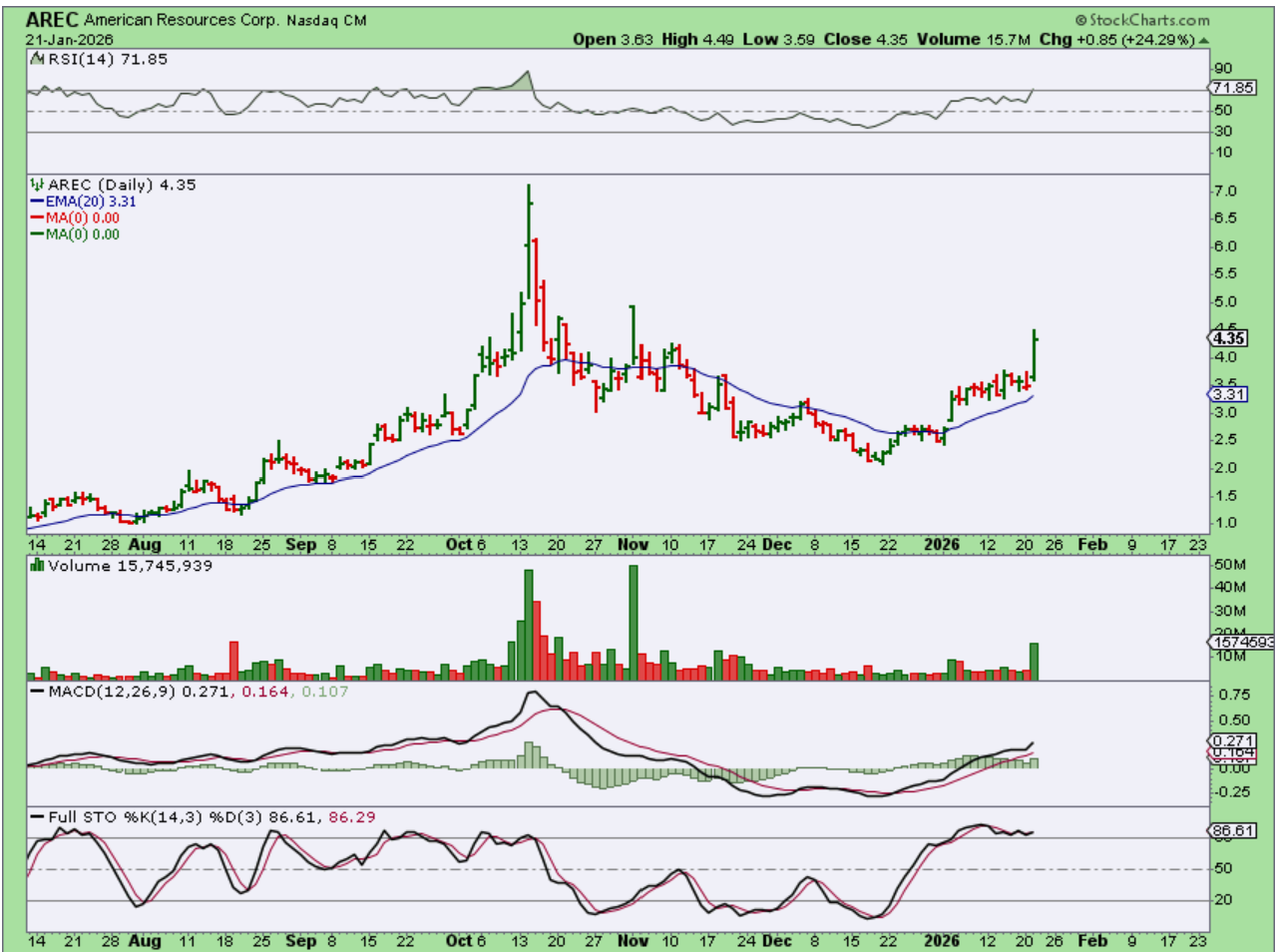 AREC started off in rally mode, so I grabbed this chart when it was up almost 14%. It then…
