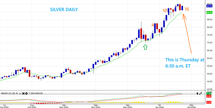 SILVER actually sold off on Wednesday as Gold rallied up over $100, but it is now higher on Thursday and remains above the 10sma. Day 16 is starting to get late, but surprises continue to be to the upside.
