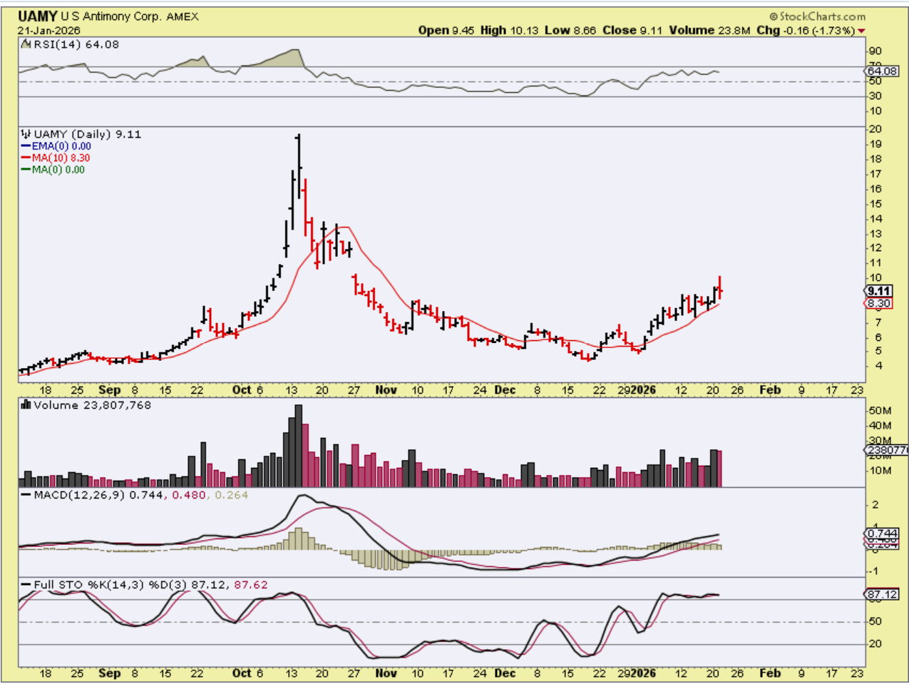 UAMY was actually red, but it was up 12% on Tuesday and it is also acting correctly. These Specialty Metals / Rare Earth companies were recommended as Buy and hold. They do chop a lot, but they pay off over time so far. This has doubled out of the lows.