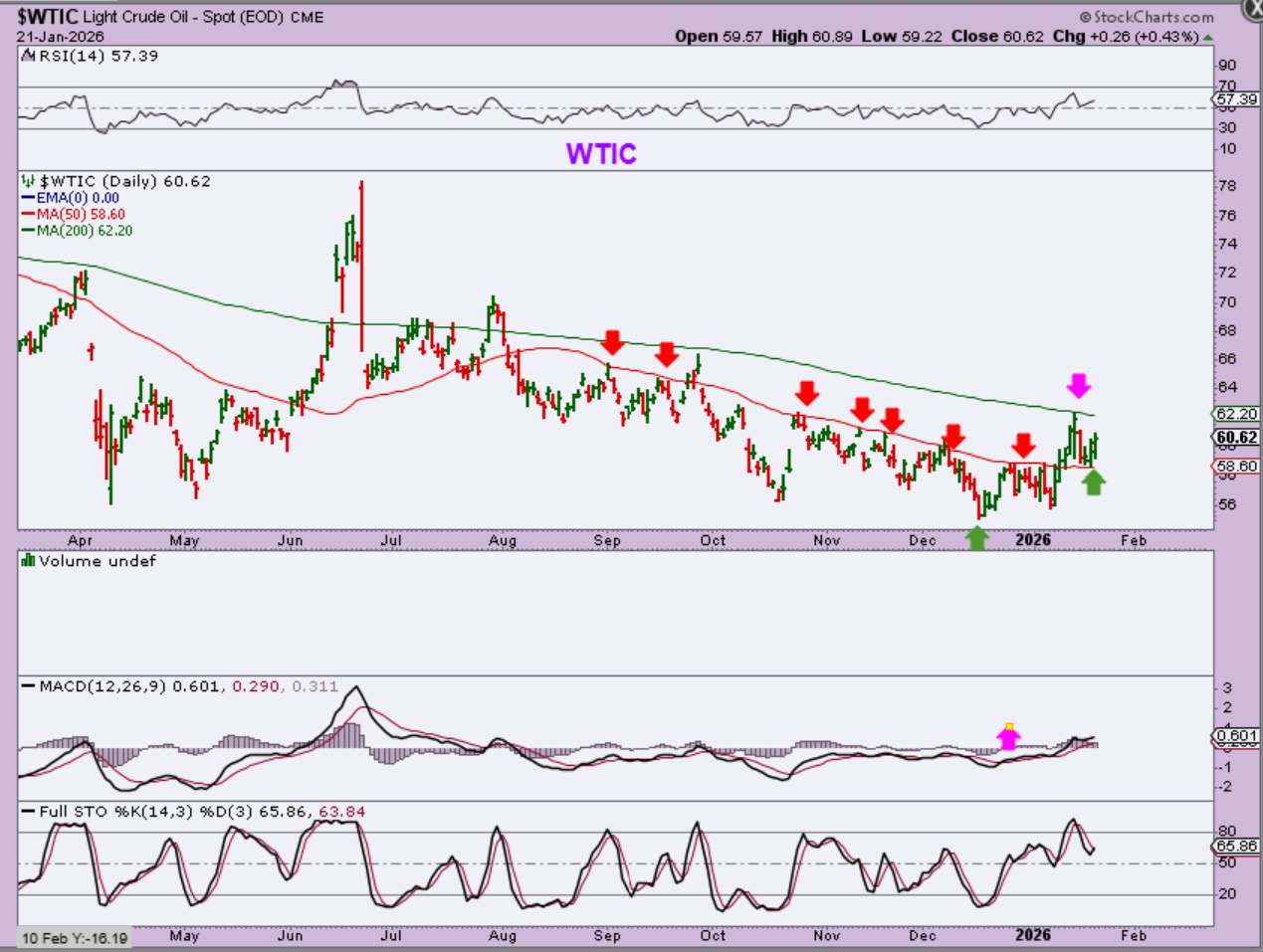 WTIC – Oil moved higher and is at the timing that a half cycle low would have formed, so this has time to move higher.