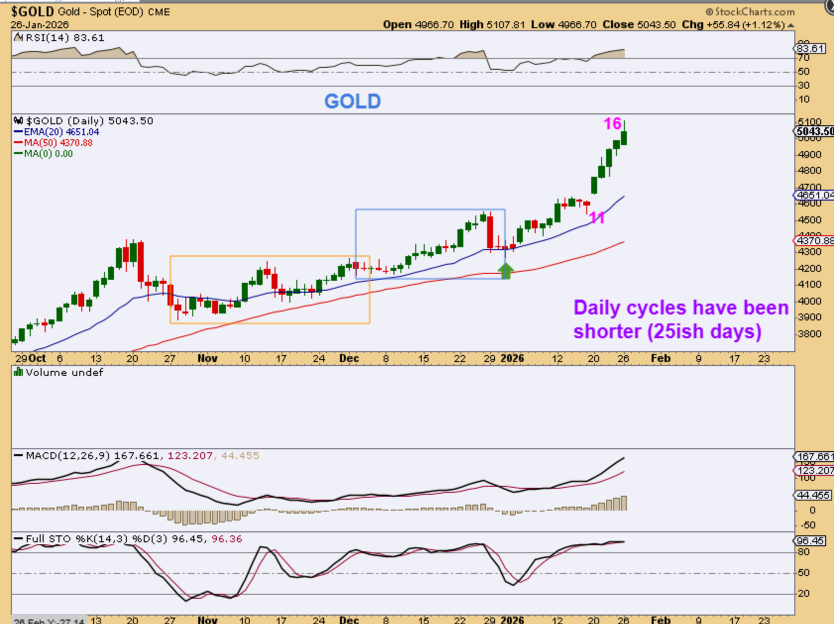 GOLD is on day 16 and it sold down a little at the close, but if that USD dips a bit lower, I think that Gold and Silver could move higher into day 20. I mentioned that in the weekend report.