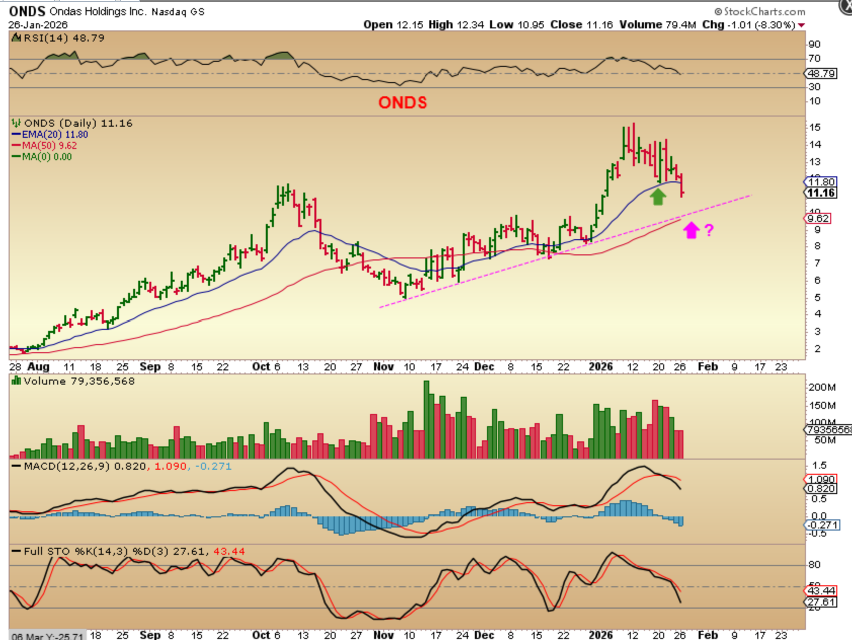 ONDS reversed higher at the 20ema as support, but now it also lost it yesterday. ONDS was very strong. It ran from $6 to $15 out of the ICL, but it may drop back to $10 for the 50sma.