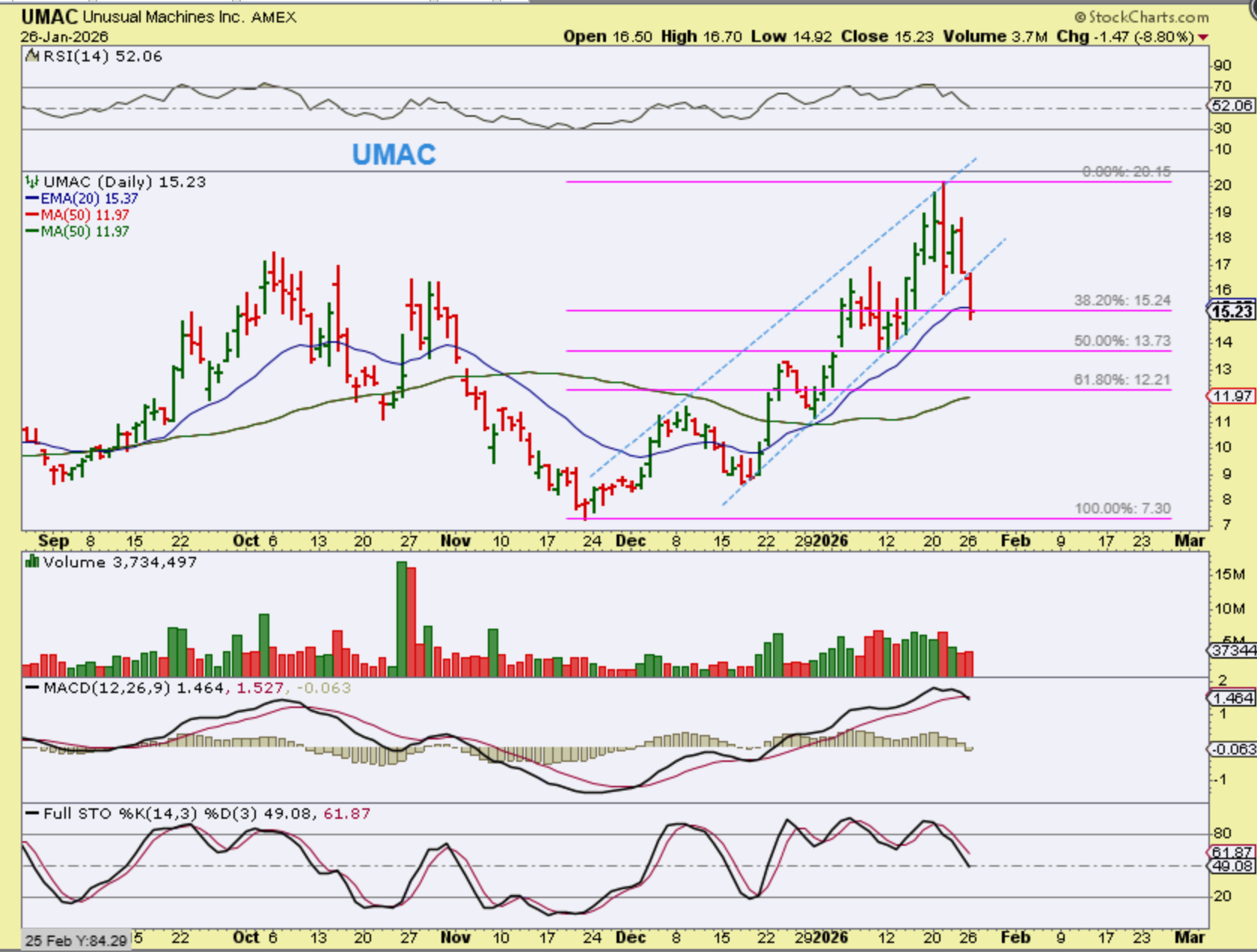UMAC just broke the 20ema too, and my blue uptrend line. It ran from $7 to $20 since the November ICL, so these were very strong stocks, but I am just a bit concerned about yesterday’s price action. They may tag the 50sma and for some that is giving back significant gains.