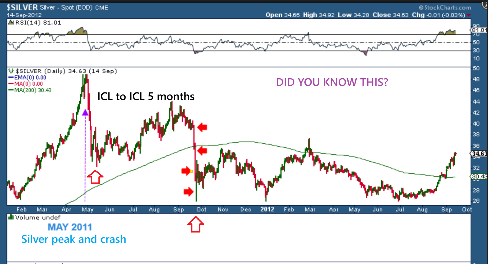 1. Silver rallied just about straight up in 2011 and ‘peaked ‘ in May before crashing straight down. Yes, you likely knew that. 🙂