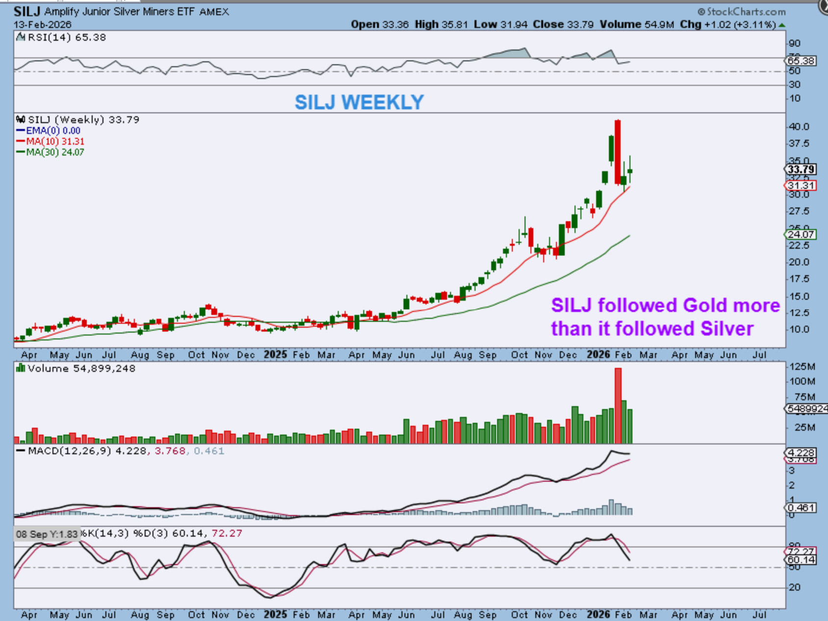 SILJ WEEKLY – The Silver Miners appear to have bounced with Gold or bounced on their own too, since Silver gave us 3 red weeks in a row and SILJ also has 2 green weeks after the crash.