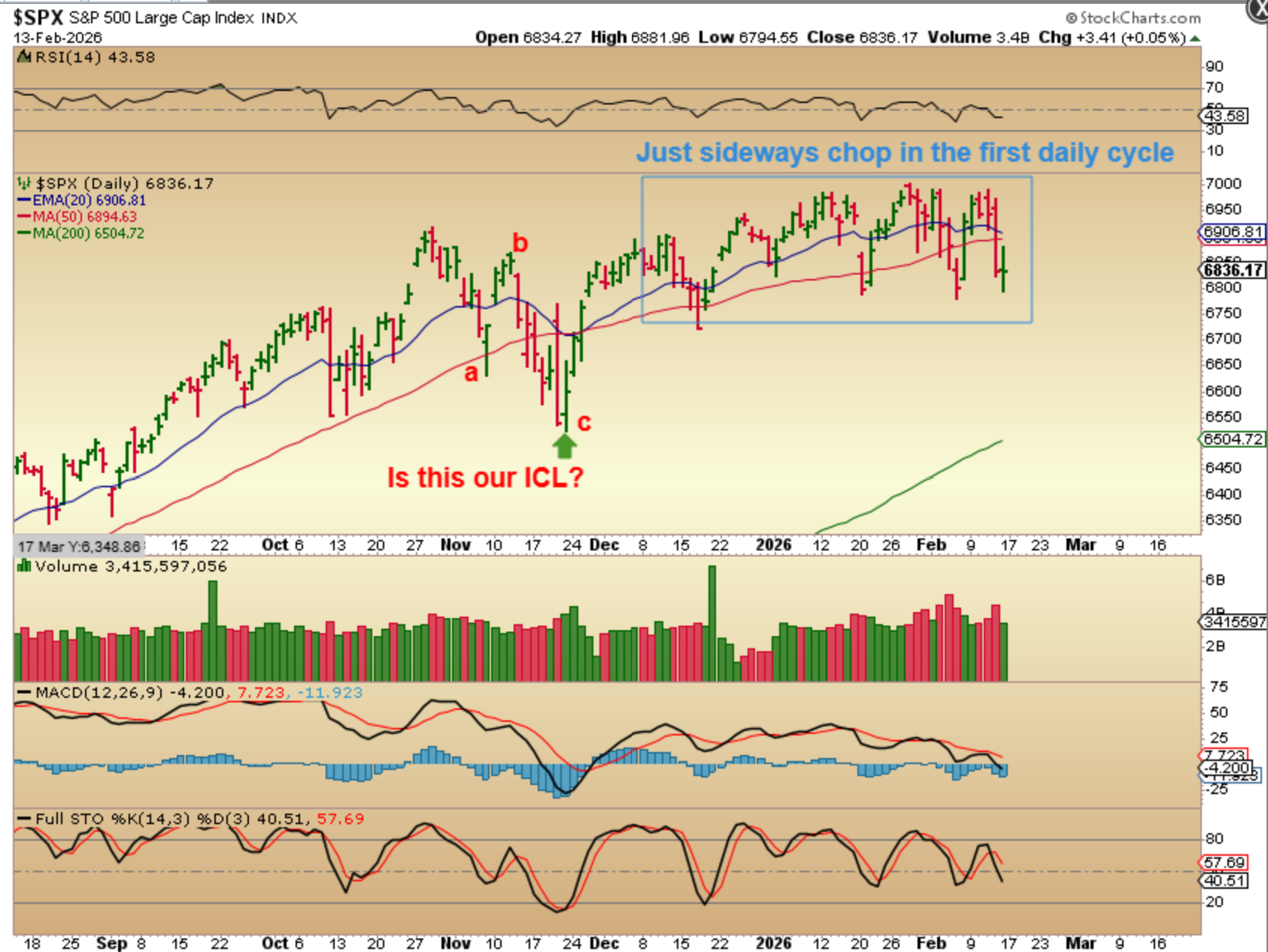 NASDAQ – This current choppiness looks VERY SIMILAR to the same time period last year. We were choppy with all of the ‘tariff’ talk in early 2025 and suddenly the real ICL came in the form of a crash. We saw an A-B-C drop into the APRIL ICL CRASH made up of 2 daily cycles lower.