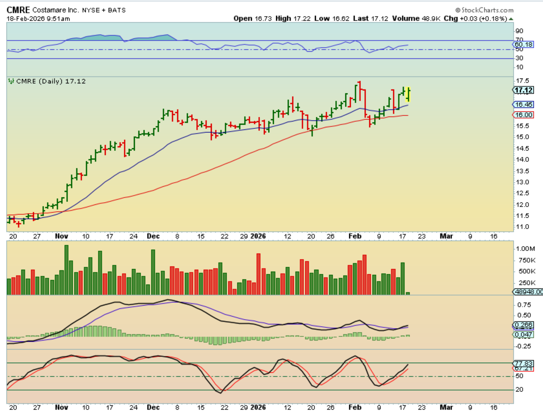 CMRE is a shipping company that released earnings yesterday. I pointed it out as it went Red to Green. Shippers have been bullish with Oils strength. See NAT, SB, SBLK, TK, TNK, etc. Some are extended, so they become ‘buy the dip’.