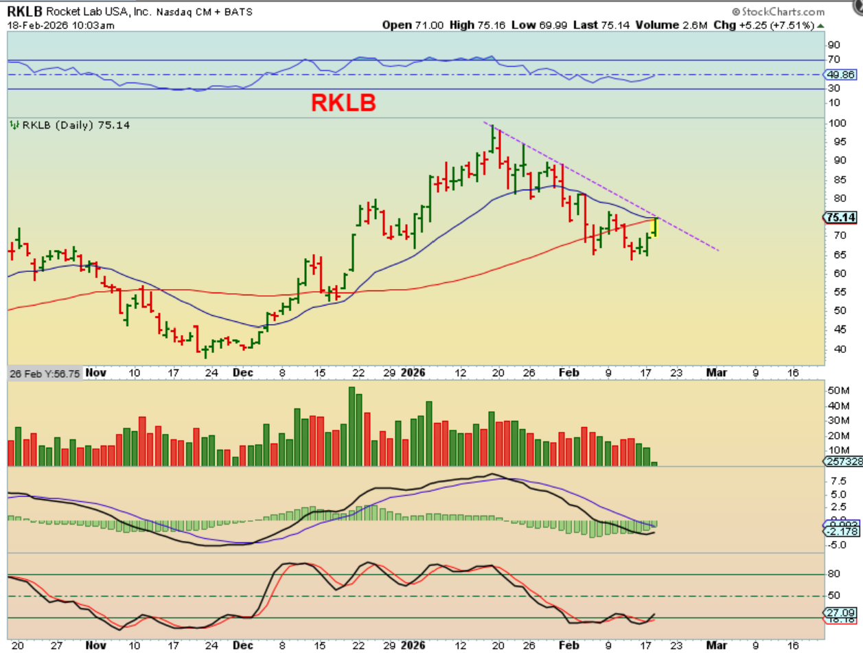 RKLB is pushing on the 50sma and 20 ema after selling off with that dcl drop. It may recover today.