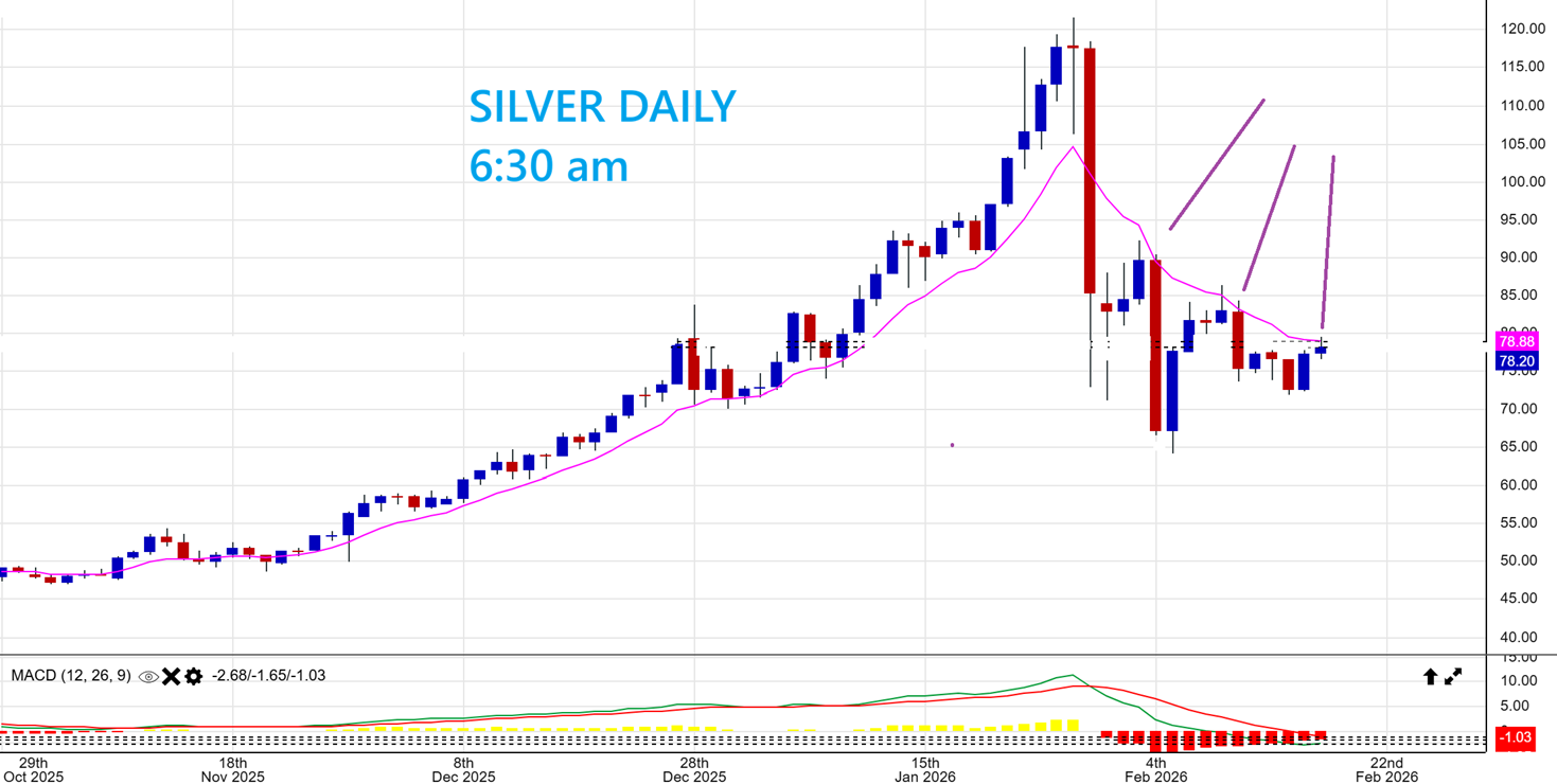 SILVER also moved higher yesterday, but it is still under the 10sma. This is a live chart of Silver this morning.