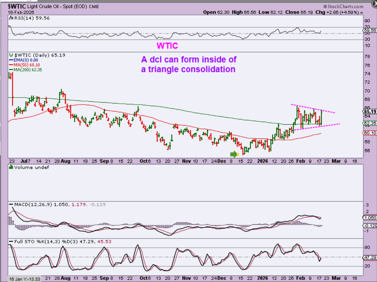 Oil is bullishly consolidating ABOVE the 50sma. It may be forming a dcl inside of a triangle too.